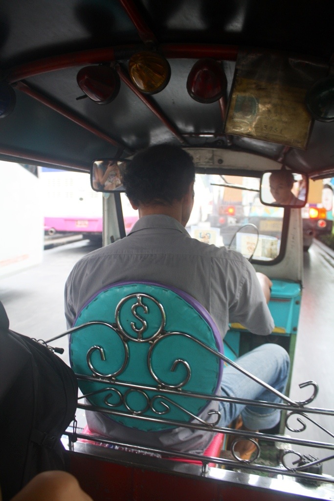 A necessary side note: Traveling this city by tuk tuk is no Sunday afternoon stroll. It was the most terrifying and chaotic orchestration of moving bodies and vehicles that I have ever witnessed. Yes, there are lines on the road. No, they don’t matter. They are merely suggestions. While sitting in a tuk tuk in Bangkok traffic, you are surrounded, uncomfortably close, by at least two or three motorbikes or taxis in your same lane. Only centimeters separate you from other vehicles. Then all of a sudden, a motorbike speeds up in front of you and swerves across three lanes of traffic, disregarding all lines on the road and miraculously dodging five, ten, twenty motorbikes, cars, taxis, and tuks tuks all doing the exact same thing.