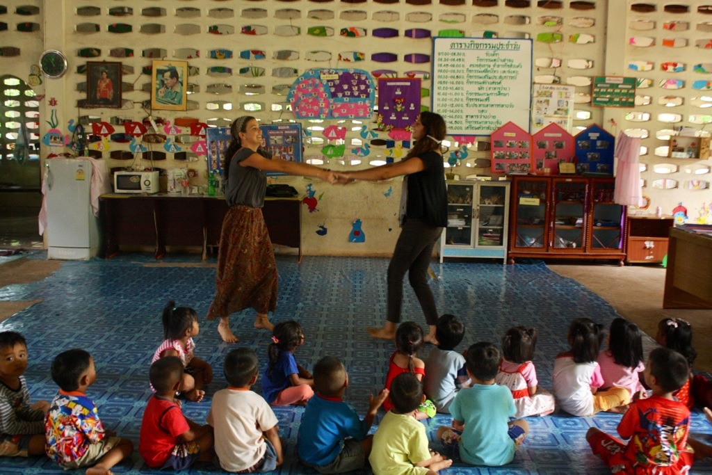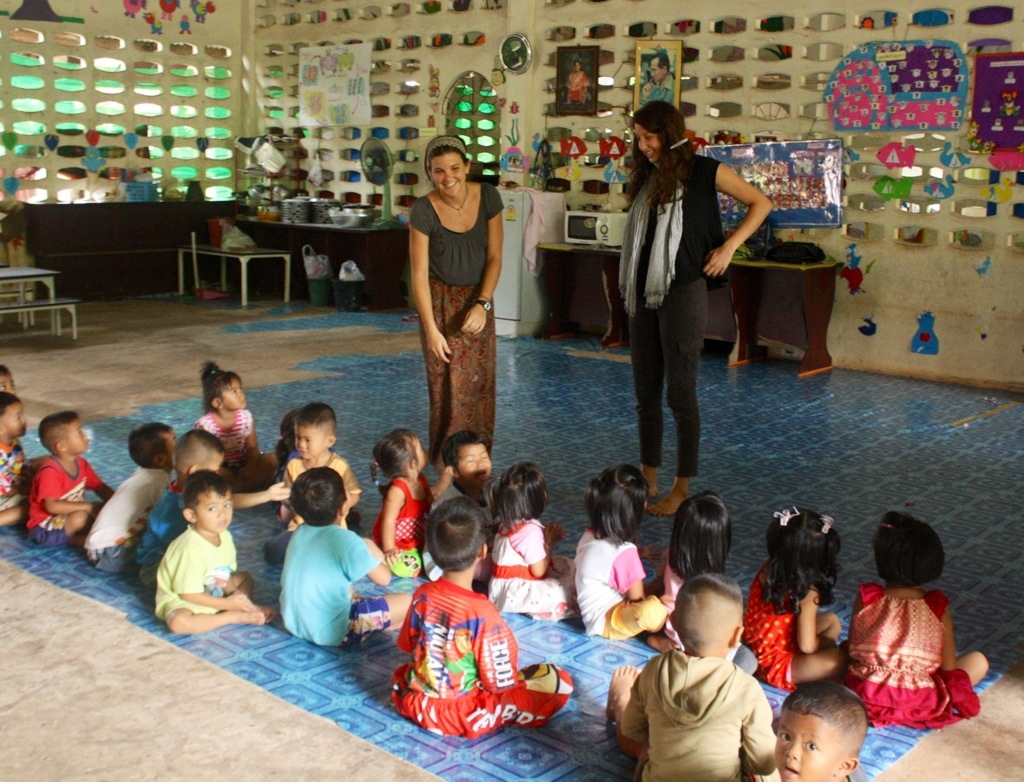For brunch, Mel, Djun and I made Tom Yum soup, steamed flowers and tempura fried plants from the garden. Then, we went to the temple to hang with the kindergarteners and show off our new song (with dance steps included) that we prepared the night before. It was basically just us singing Chan Rak Thur (I love you) and spinning around in circles. The kids loved it! They cheered us on and started clapping to the beat. One thing that children–of all ages, ethnicities, and cultures–always appreciate is enthusiasm. In return, they give unconditional, inexhaustible love. Today, we were smothered with affection. The kids ran to greet us, hugged us, held our hands. We were swarmed by little monkeys hanging on our backs, dog piling on our laps.