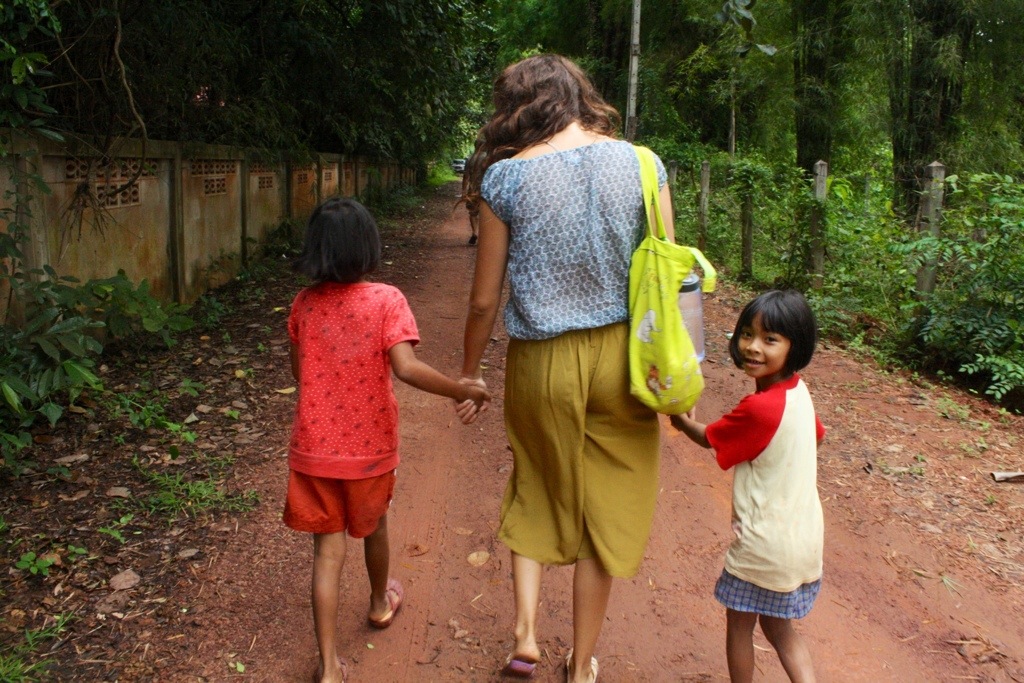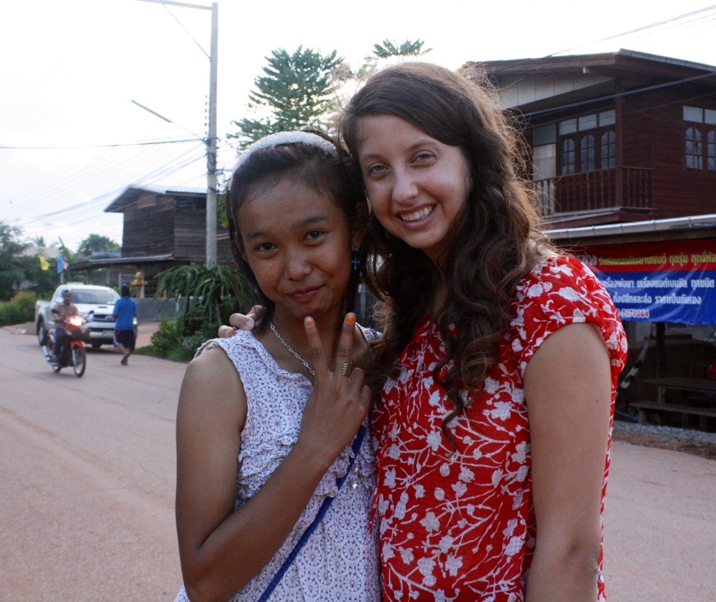 Thip, a 15-year-old girl from the village, took a liking to us and accompanied us to the market. It seems like every time we set out for a walk around the village, our numbers multiply with every street we pass. Children always want to join us on our journey, even though they don’t know where we’re going. Thip knows very little English, but is intelligent, perceptive, intuitive. She is able to help us around the market, buying food and and clothes, being our translator, teaching us things. For us, she breaks out of her shell. Isara says she is normally very shy. We instantly feel close to her. Walking arm in arm.