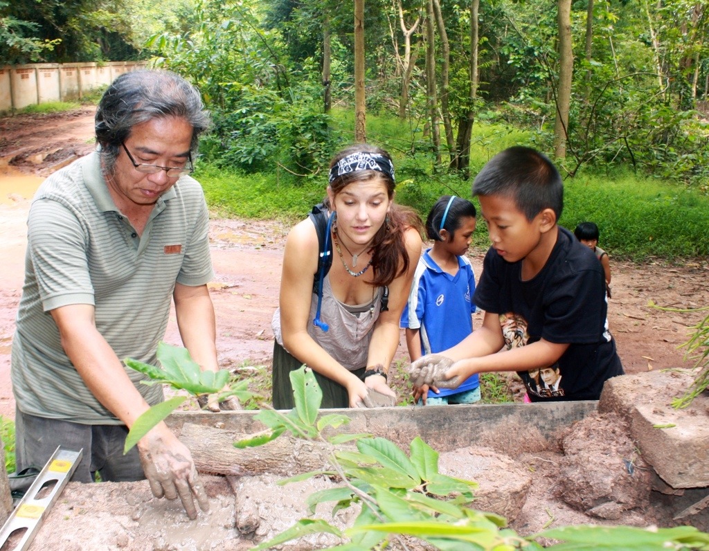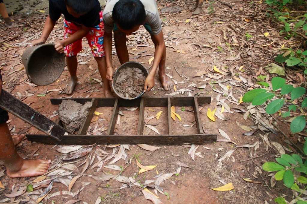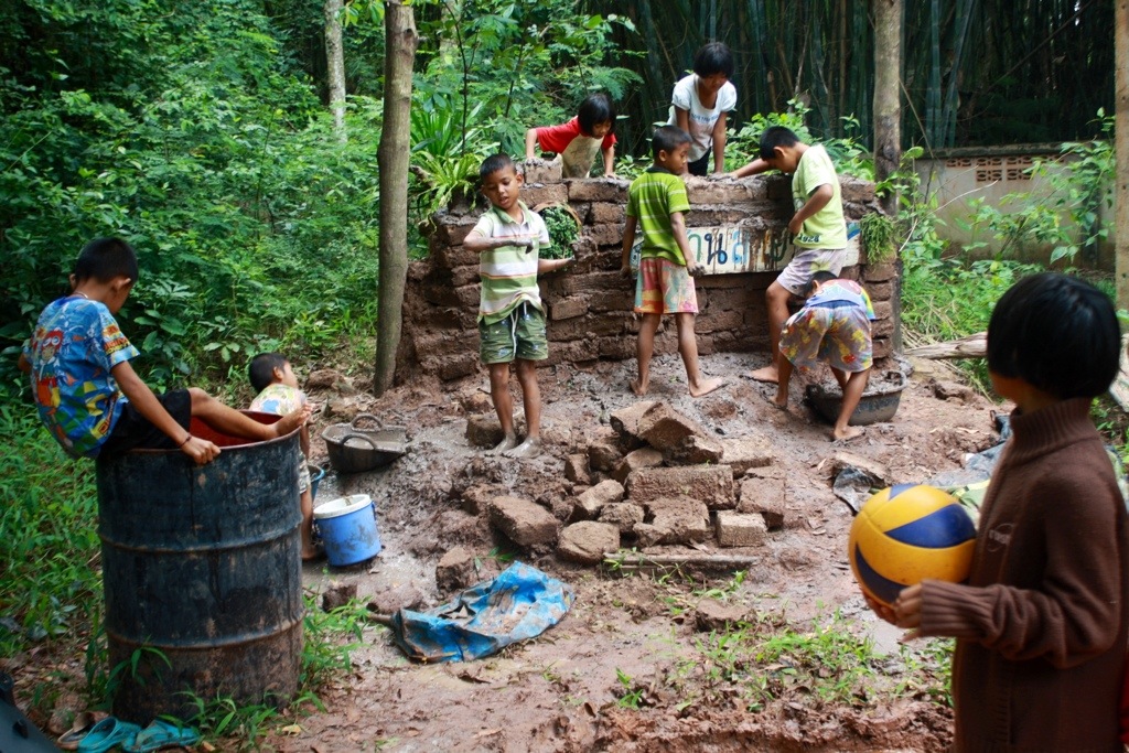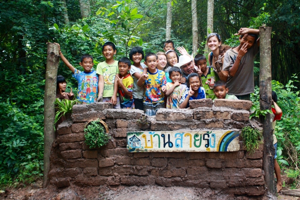 Yesterday, we built a mud wall for the entrance to Ban Sai Roong. After walking home from breakfast (spiced pork with sticky rice), the village kids, one by one, started to follow us. I sensed they had this strange intuition, that they knew we needed their help. Now instead of having 3 people to build the wall, we have 20. And every one of them was eager to be involved in the building process. A beautiful collaboration. A one-of-a-kind creation. It is amazing to me how self-assured these children are. They take pride in showing me how things work and treat me as an equal. With patience and understanding, they show me how to make mud into bricks, tell me when and where to wash my feet, take me under their wing. Our mutual respect transcends age and cultural differences. Reminds me that we are all teachers.