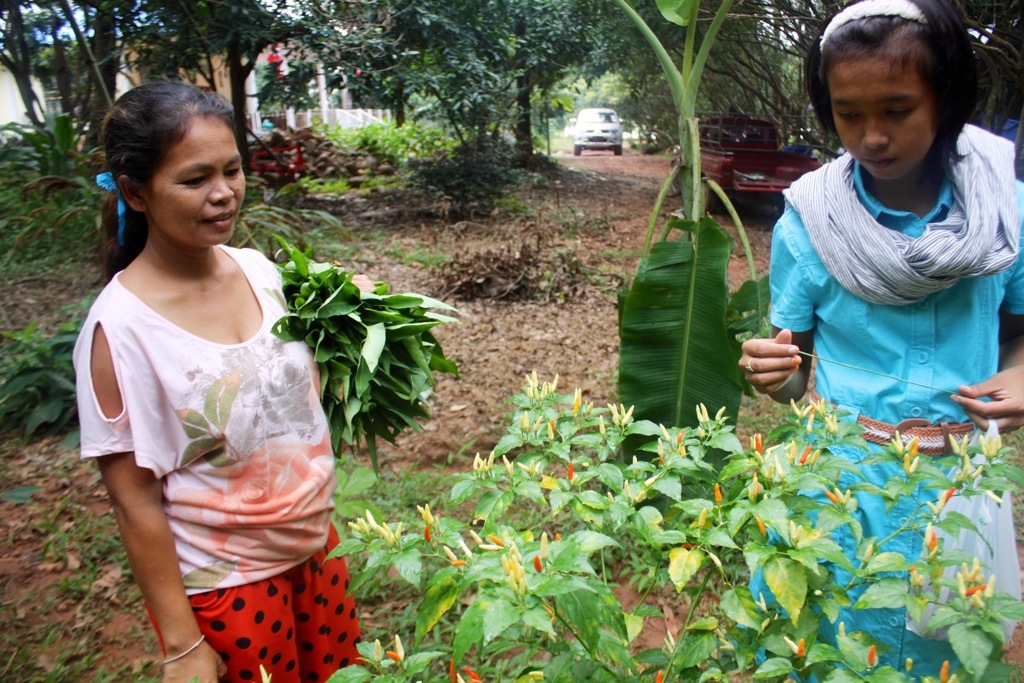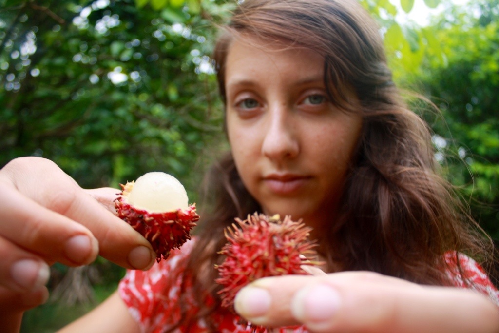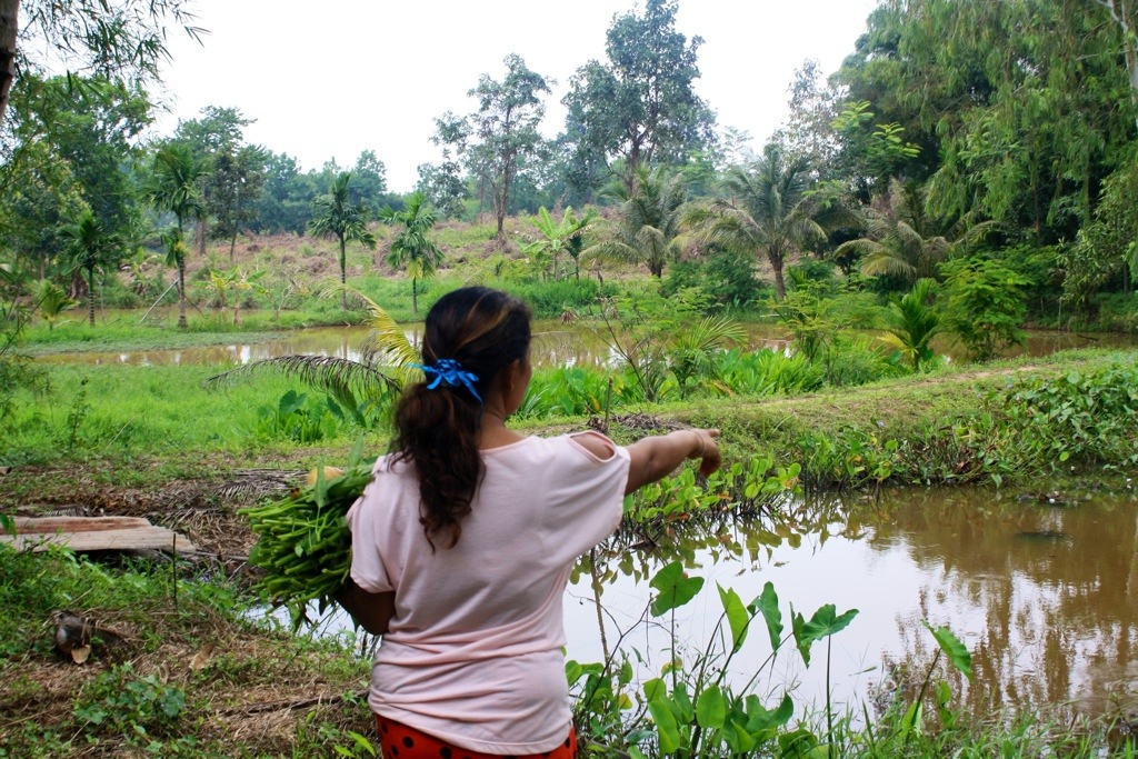 Noi gave us a special treat today by showing us around her family farm. She drove Mel, Thip and I down the road and walked us around her 20-acre land that is surrounded by a lake overlooking the mountains of Chiayaphum. She has enough food to feed a post-apocalyptic society. We walked and talked, picked ngo from her trees (a red fruit that tastes sort of like lychee, one of my favorites).