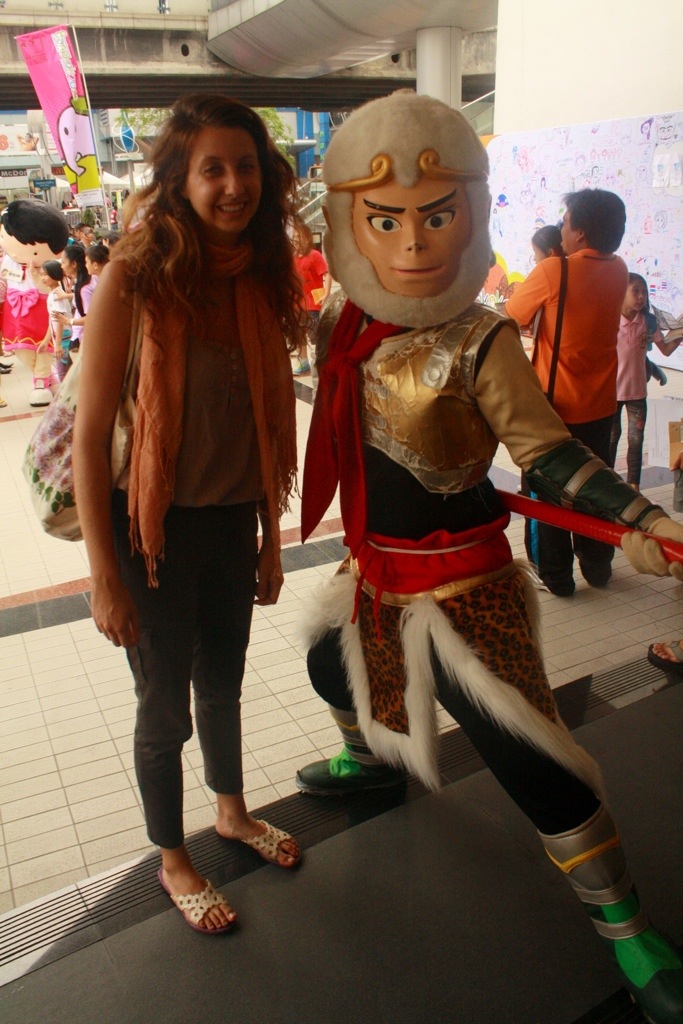 Last Saturday, Mel and I spent all day running up and down the nine spiraling stories of the Bangkok Arts and Culture Center. This place blew our minds! They had live music, real coffee, tons of little shops selling handmade recycled crafts, and an overwhelming collection of local Thai art, both traditional and modern. AND, they had an entire floor filled with stacks upon stacks of old magazines, books, and newspapers–all free for the taking. Feeling the urge to make Asian-inspired collages, I spent nearly an hour rummaging through the piles and scavenging for new materials.