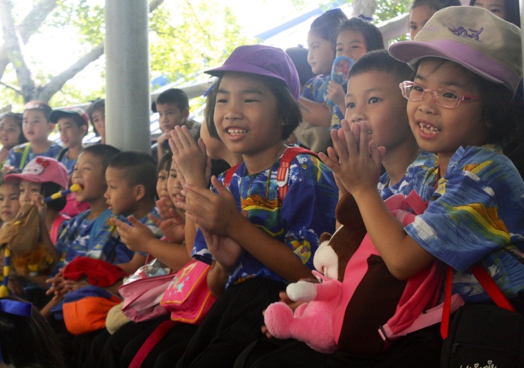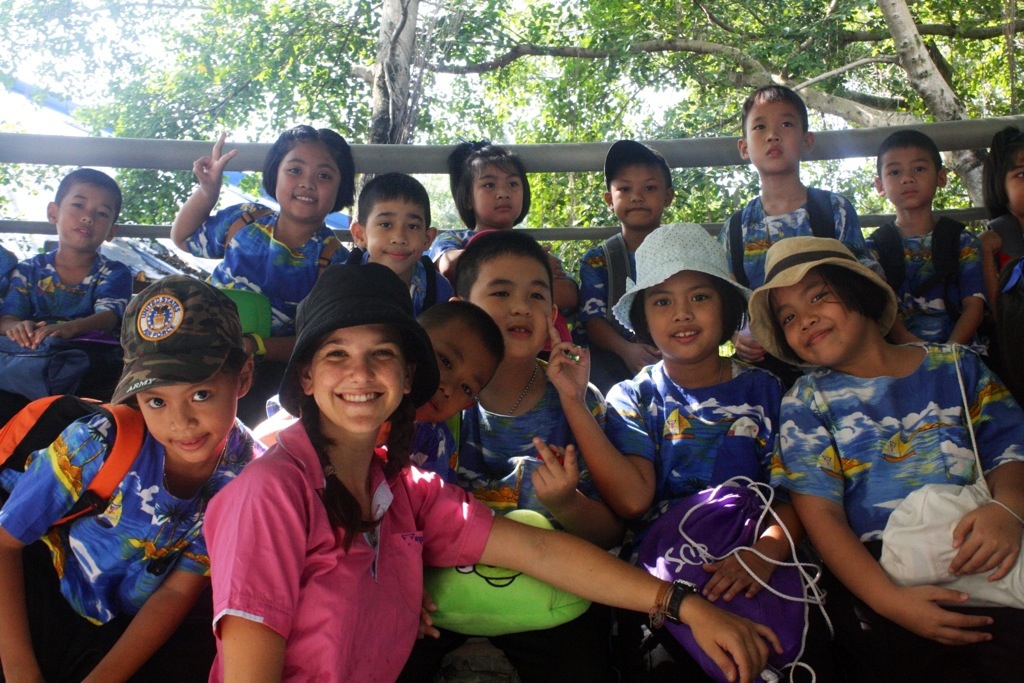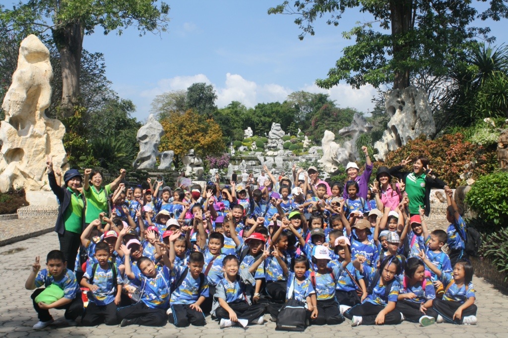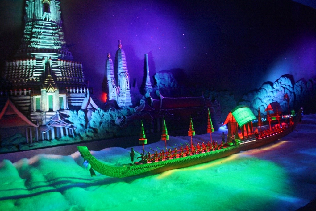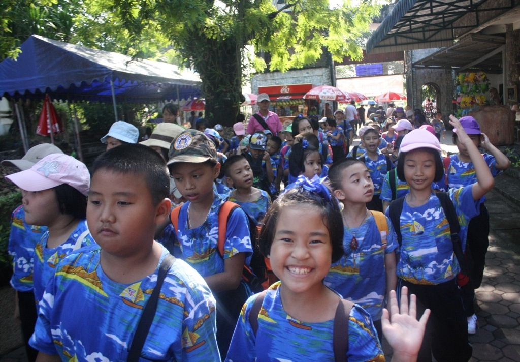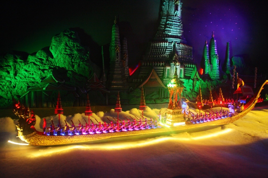 On Thursday, my second graders and I went on a field trip to Pattaya. We visited the Million Years Stone Park, where we saw million year old petrified wood, impressive bonsai trees, intricately carved boulders, and a crocodile show that had my students unnerved, on the edge of their seats. Promptly after we left the park we were shuttled to our second field trip, The Miniature Thai Royal Barge. This new performance and culture center displays a miniature model of the famous Royal Barge Procession, but behind glass that reflects prisms made from rainbow-colored LED lights. This moving procession of iridescent ships mimics the rare, extravagant and supremely significant Thai tradition in which the royal family and 2,000 oarsman occupy 52 barges and float down the Chao Praya River in Bangkok. Their destination is Wat Arun, the Temple of the Dawn, where they present monks with gifts and offerings of clothing. During the reign of the current King Bhumibol Adulyadej, spanning over 60 years, the Procession has only occurred 16 times. We had the fortune of witnessing the most recent procession only 10 days ago.