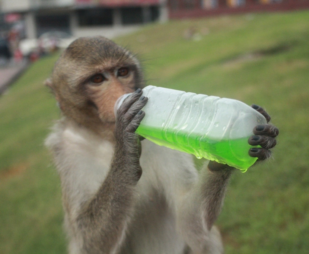 What struck me most was how human they are. Or, perhaps, how monkey we are. Their faces carried so much emotion. Jealousy, embarrassment, vexation, greed. Sensitivity and fear for their young. Watching them behave was like watching drunk, gluttonous humans at a party. Chugging soft drinks and beers, spilling them everywhere. Ungracefully eating corn on the cob, kernels slopped all over face and chest. Picking through food and spitting out seeds and licking the insides of chip bags. And throwing all of it on the ground.
