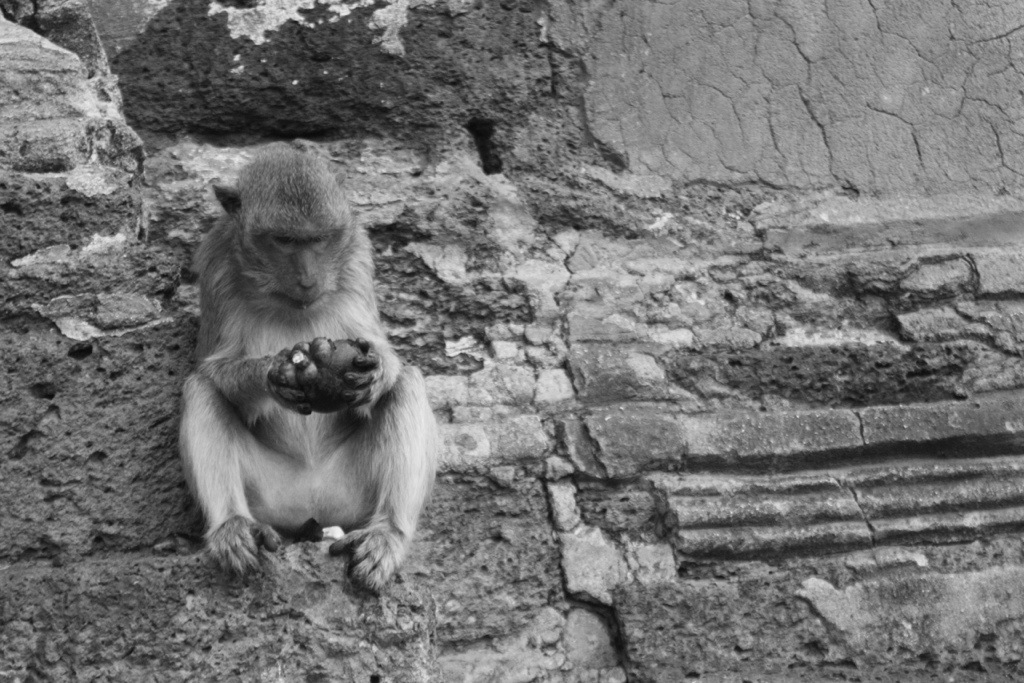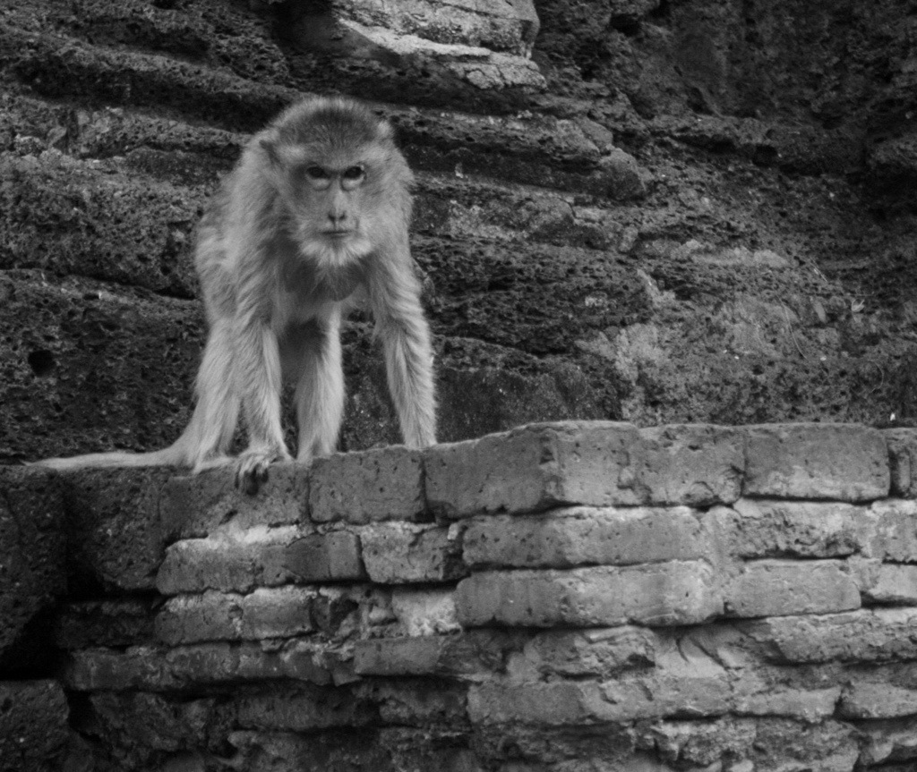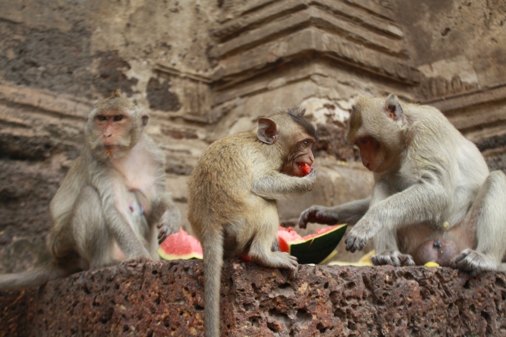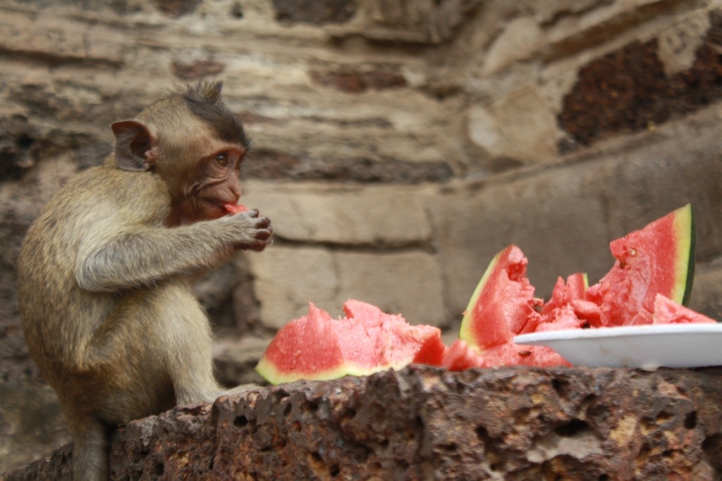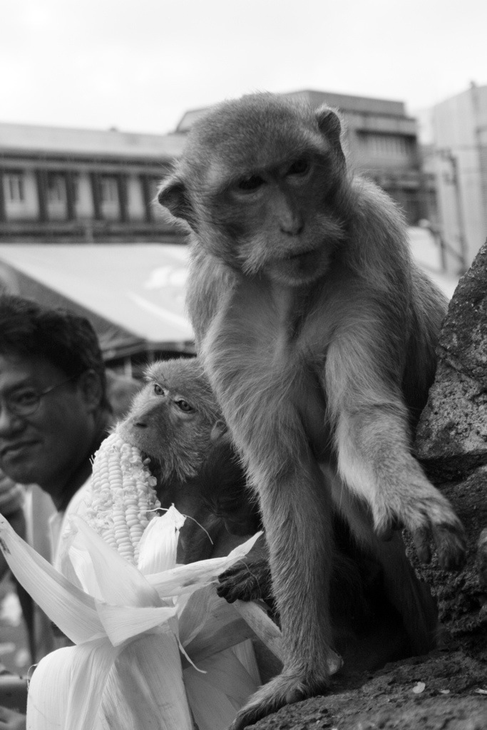 The macaques roam the city freely and operate in troops, oftentimes called gangs depending on their demeanor. It is not uncommon to see a monkey catching a bus to the local market to scrounge for food, then taking a return bus back to his home at Phra Prang Sam Yot. Though they are often fed by locals, the monkeys are independent, resourceful and opportunistic. They will fight for their food, even if it means stealing right out of your bag or your hands.