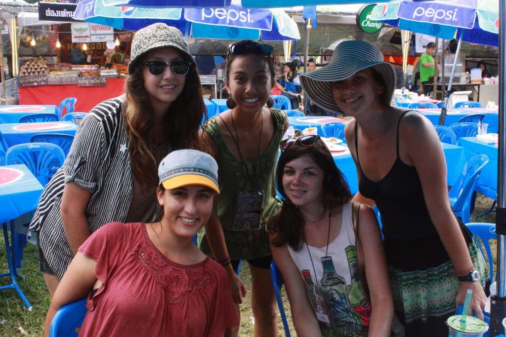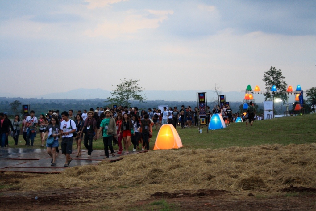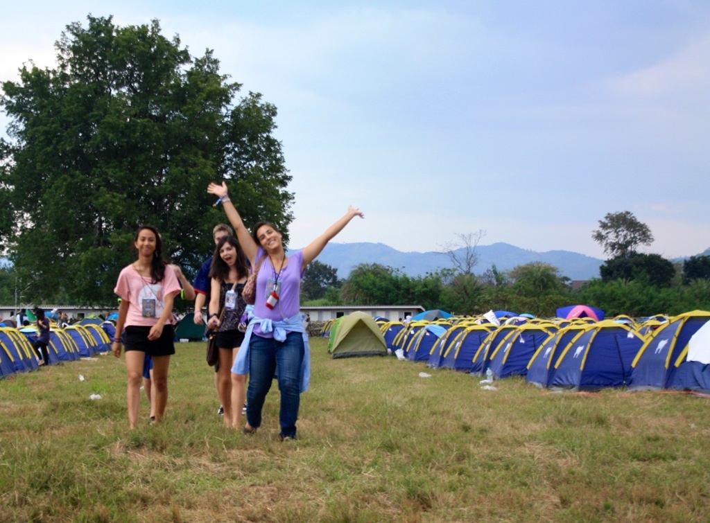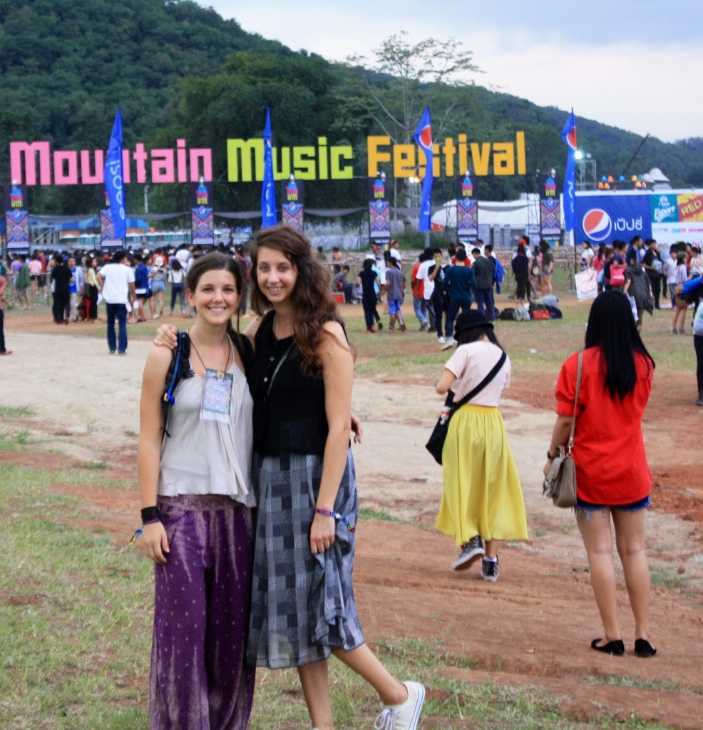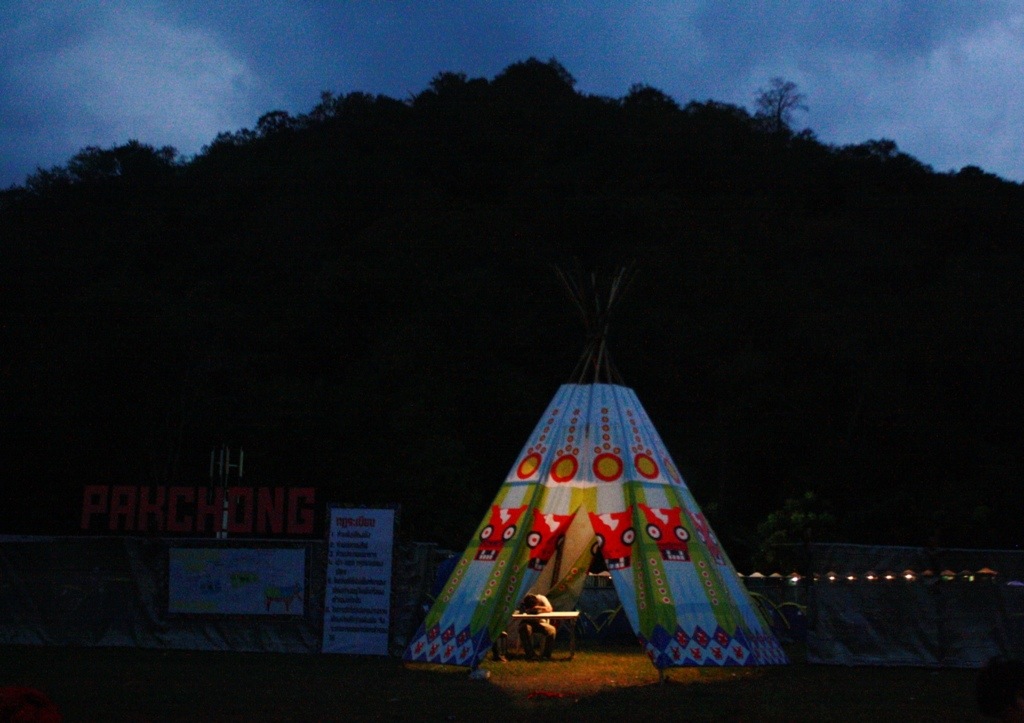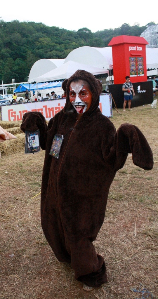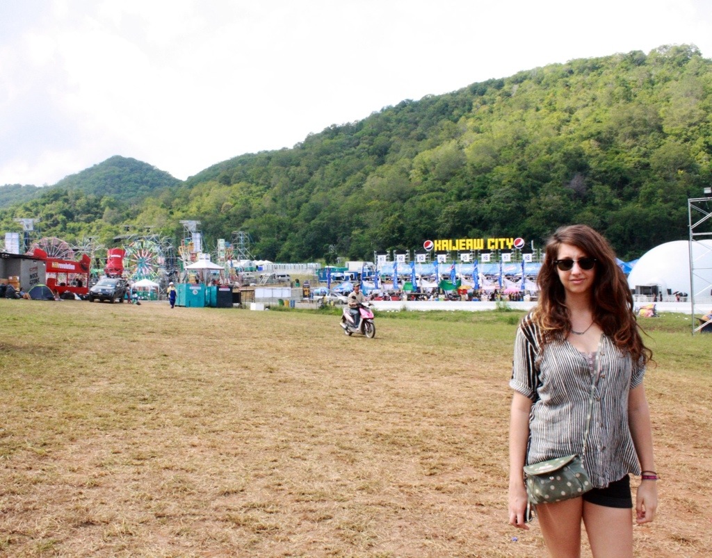 I managed to get my fill of live music. I’ve been starved for it, have felt eerily incomplete without dancing. On Saturday, Mel, Rachel, and I met with our friends in Bangkok and headed to the mountains of Khao Yai for a two-day camping adventure at Thailand’s biggest annual music festival. I was not familiar with any of the bands and was unsure of what to expect. It turned out to be sensational. The scenery was picturesque–we were surrounded by soft blue mountains in every direction and were relieved from the Thai heat by a constant, benevolent breeze. Walking through the crowd at Ferris Wheel stage, Mel and I were pulled into a choir of ecstatic singing Thais and pretended to know the words as we sang along, threw our hands in the air, and jumped around with them. They were nearly in tears over their favorite pop artist, 25 Hours. Their enthusiasm was contagious. I spent the day head banging to metal bands, dancing on stage in a 60’s psychedelia-themed tent that blasted Spice Girls, and bouncing around at the reggae stage where I busted out my best moves. Drinking coconuts, freaking people out in a Thai male model mask, trying to communicate in Thainglish, and getting $6 massages. At night, I outlasted my fellow farangs and endeavored on a solitary adventure of all-night dancing until 5 am.