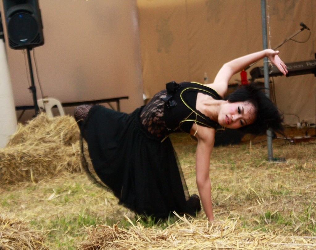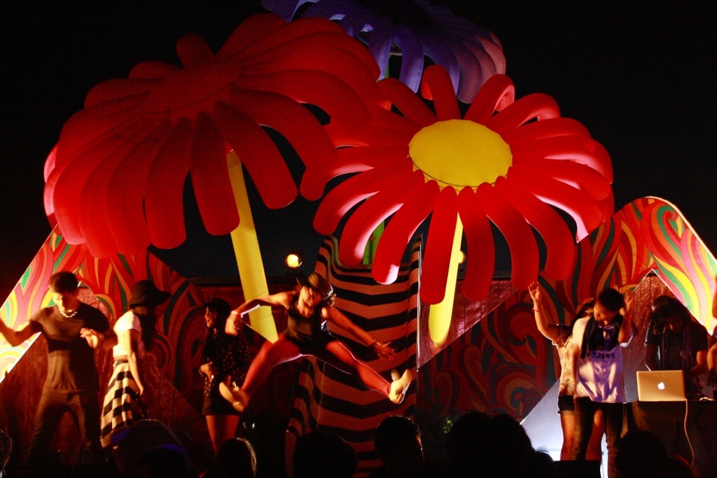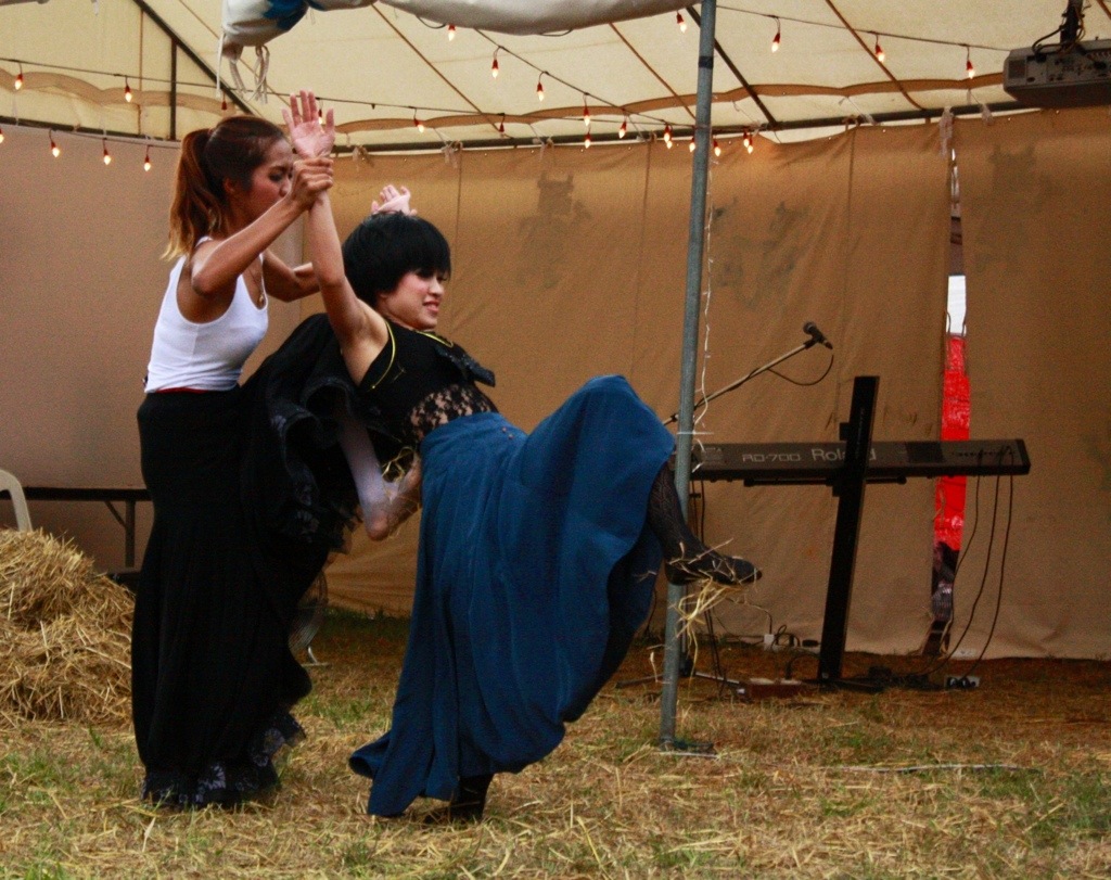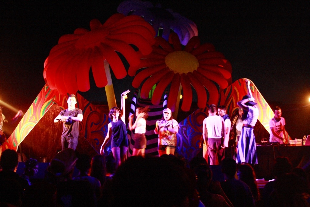 On Sunday, the unforgiving sun woke us up around 7 am. We saw an impressive two-piece band that melded beat boxing with the melancholy sounds of the violin in a most satisfying way. They played a Beirut cover and we were head over heels. Later, we mingled with mascots dressed as bears and starfish. It pleases me to see my profession (once a mascot, always a mascot) so prevalent in this weird and fantastic world we live in. I enjoy the types of people that music festivals bring together. A family reunion for eccentric spirits. We sat for an interpretative dance performance, which I loved, and a mime and ventriloquist show too.