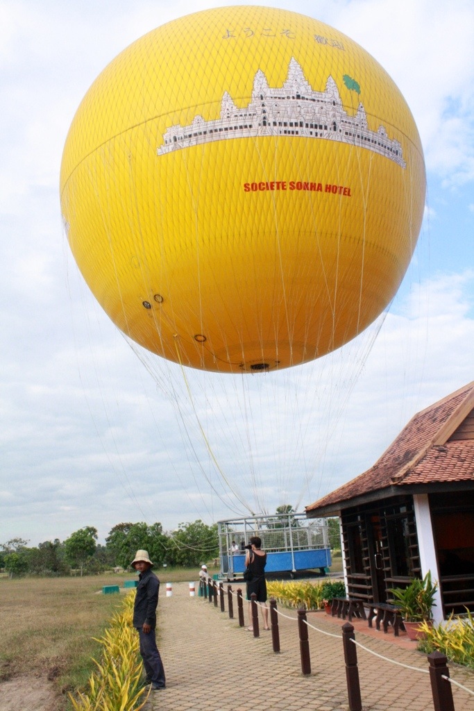 Before viewing a giant up close, it helps to first gain a distant, peripheral perspective. To realize what you are in for. With a desire to see the Angkor complex from afar, I half-fulfilled my childhood dream of riding in a hot air balloon. Half because the balloon, which by name calls to mind an experience of floating freely at will of the wind, was constrained by a wire pulley which only allowed for an up-and-down elevator effect. I imagined myself floating high above Angkor Wat, peering down with the option of jumping out and landing on an unsuspecting tourist and falling to what surely would be the most photographed and picturesque death of all time if I so pleased but, alas, these dreams were squashed. From such heights, however, I could get my bearings. Angkor Wat stood before me, Tonle Sap Lake to the right of me, Phnom Bakheng to the left of me, and the Siem Reap airport behind me. For a brief moment, I was given the fleeting illusion that I could somehow grasp the vast scope of this ancient empire.
