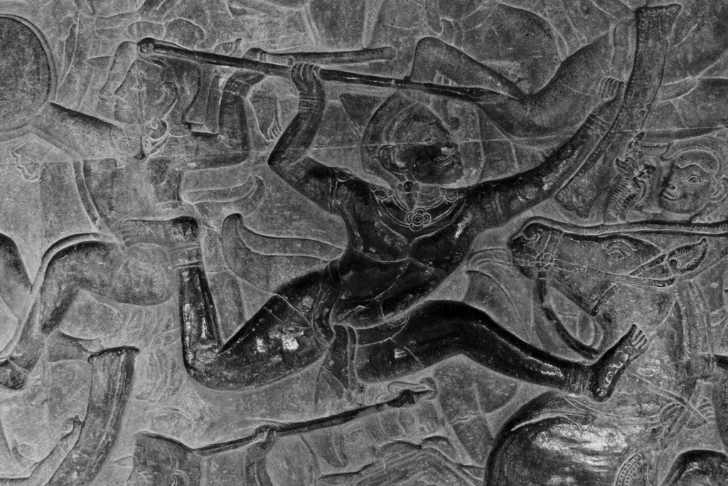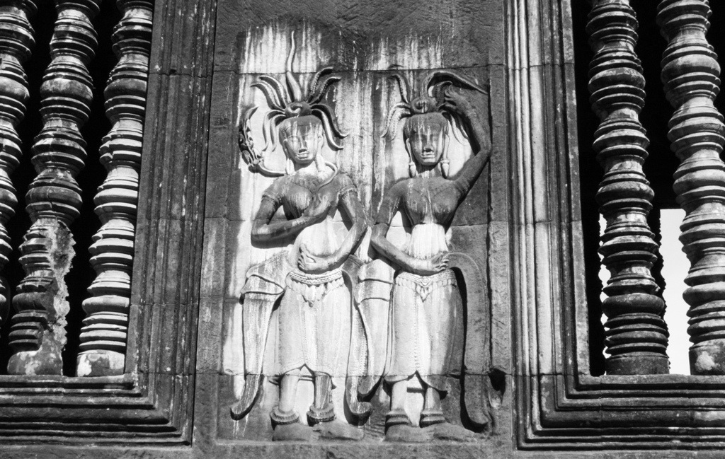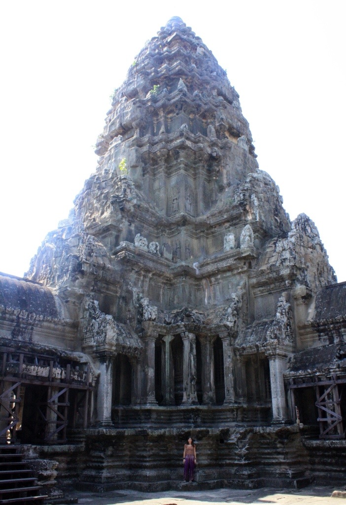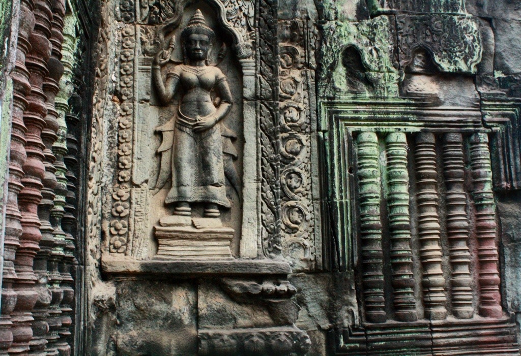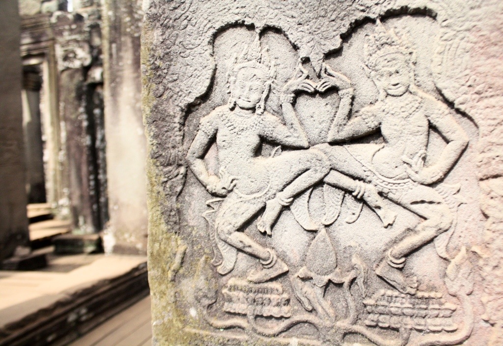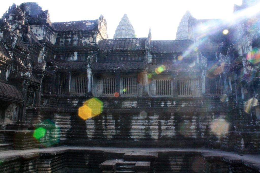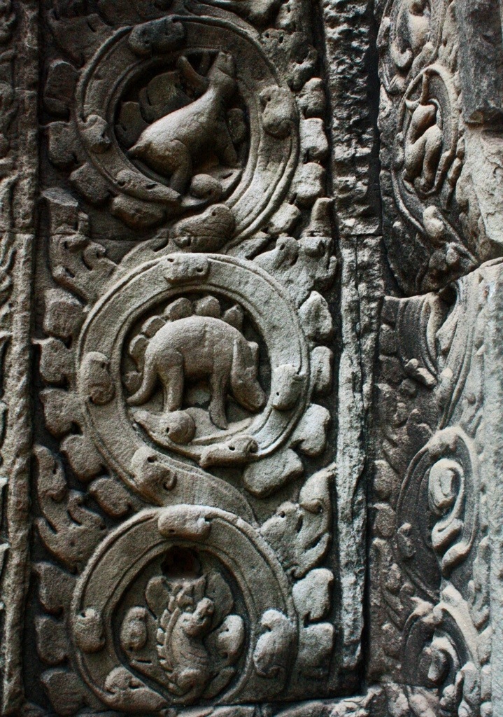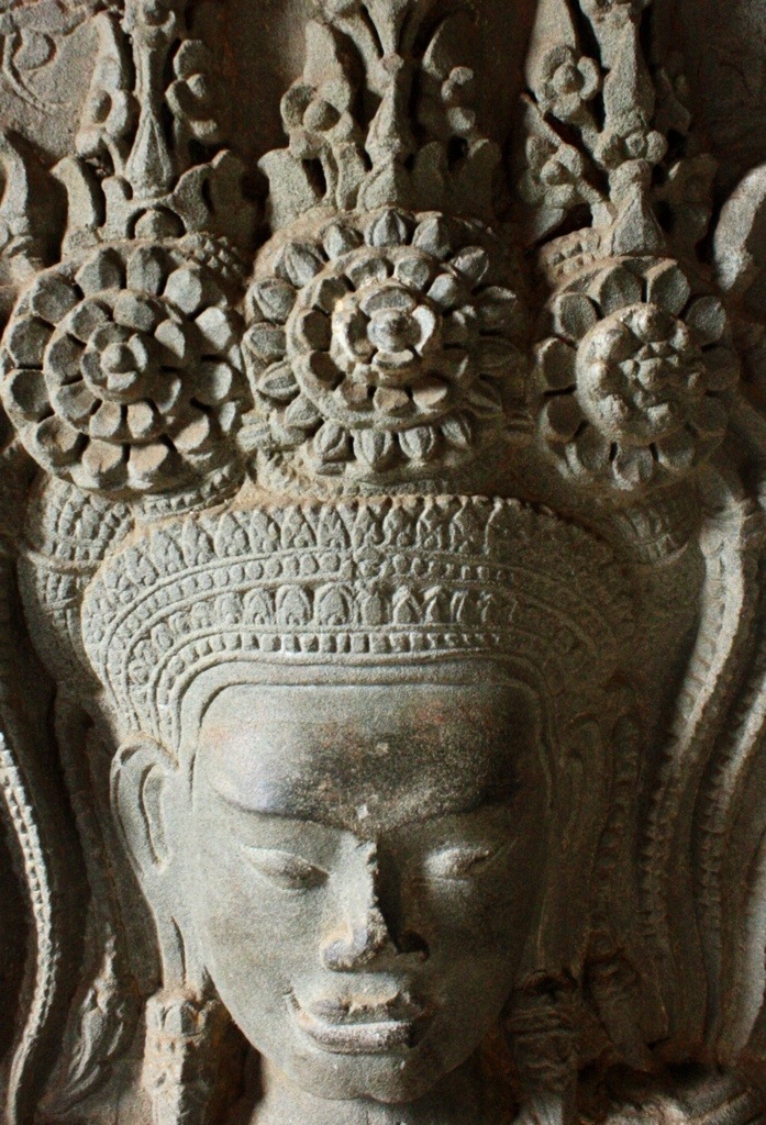 On Monday, we were determined to see the sunrise one day early. We roused at 5 am and booked it by bike to Angkor, though all five of us arrived separately and subsequently split up. All day exploring is a one woman adventure. On my bike riding through the pitch black streets of Siem Reap, a fevered reverie– feeling tired, but acute, alive. Enjoying the feeling of being alone. In silence. I was free to explore this natural wonder in any way, on any route I pleased. As the hours passed at Angkor Wat, the exponentially growing number of tourists threatened to suffocate the sanctity, to crowd the intimate experience. However, there were loop holes to this problem in that Angkor Wat is immense and, so, provided a surprising amount of getaways, hide-outs, opportunities for isolation within the temple’s many nooks and crannies. Like a 3D pop-up book, the stories of Angkor’s empire were told on the surface of her stone-carved wallpaper. The stories of war, stories of gods, stories of heaven and hell and the formation of the universe. Depictions of Vishnu, Shiva, Krishna. The merging of spiritual superpowers, the transition from Hinduism to Buddhism. Headless Buddhas. Sharp diagonals. Precise proportions. Bokehs of light. Cairns upon cairns. The serpentine curvature of voluptuous female apsara reliefs. Like sirens, appearing in twos, in threes, in fours, in fives. In numbers their appeal is potent. All of the figures–the gods and goddesses, the warriors, the laymen, the devatas and apsaras–are mobile. As I move, they move. With one glance they no longer are trapped within the confines of their walls. The stories relived, reawakened by each viewer, make the figures come alive. Standing at the center of universe–the tallest, central tower of the quincunx and Khmer representation of Mt. Meru–made me think that bas-reliefs and symmetry are all I really need. From outside Angkor Wat, none of this is evident or could even be speculated. The beauty of Khmer architecture, I think, is the way it creeps with a subliminal nature. The way the scope and complexity of the temples are subtle, hidden. The intricacies, if not experienced intimately, remain secrets.