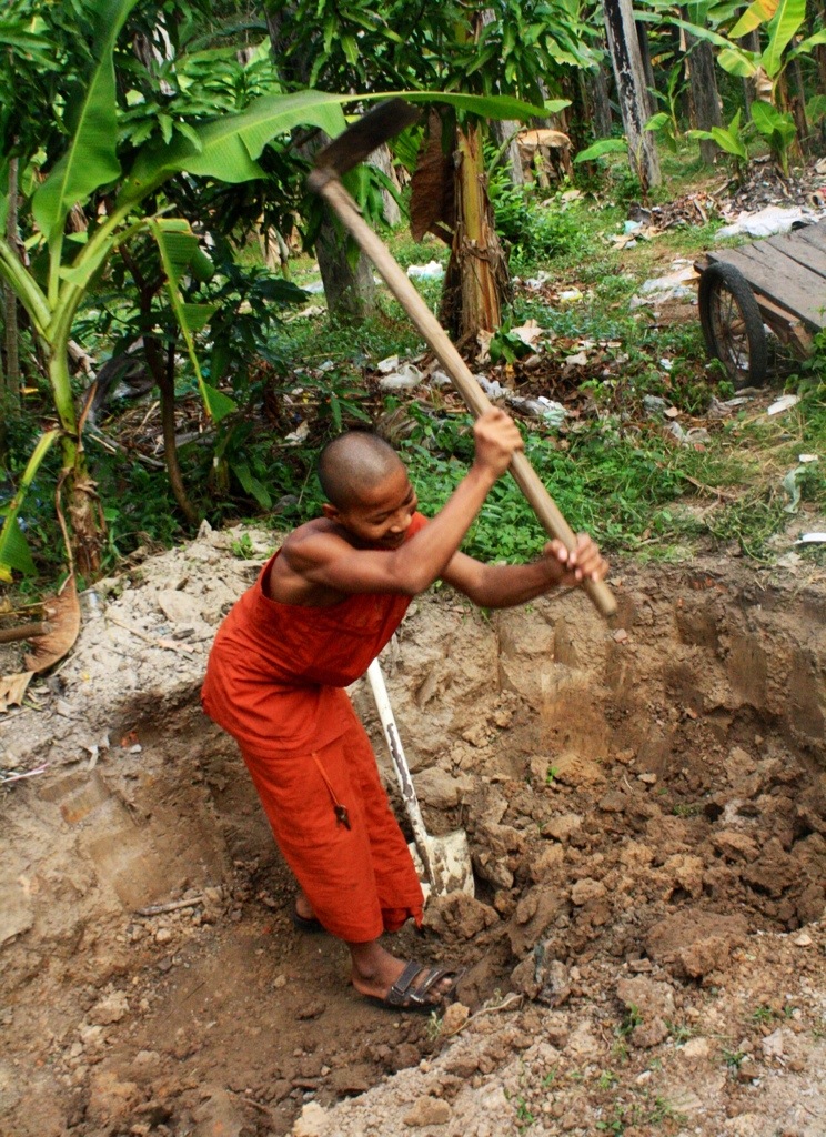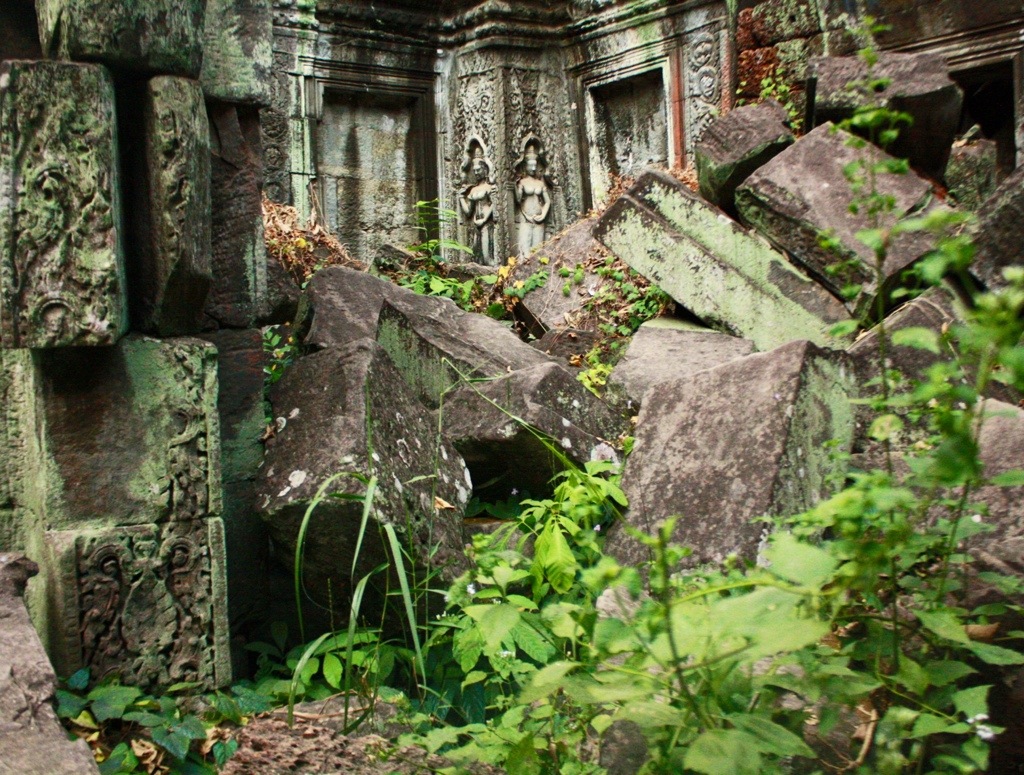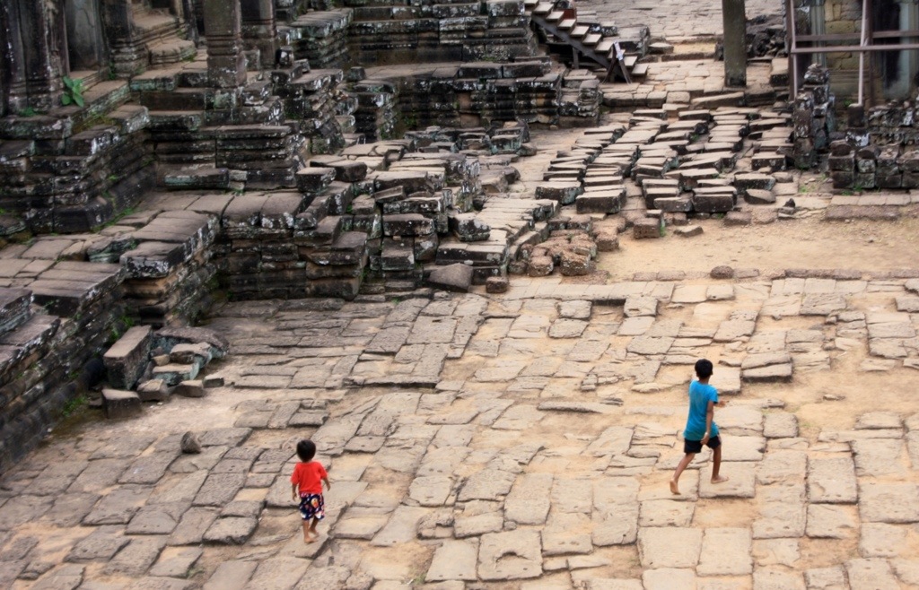 I escaped the now massive crowds of people and point-and-shoot cameras at Angkor Wat to explore Angkor Thom more thoroughly. The Baphuon, The Terrace of the Leper King, Phimeanakas, and the Royal Palace grounds. These areas allowed for more creative exploring and soon I found myself far off the tourist traversed path on a 20-minute hike into the forest, seduced by the melodic chanting of distant monks and determined to discover its origin. I never found it. Instead, I found three kids no older than nine who popped out of the bushes and claimed to be orphans seeking pity in the form of American dollars. They were cunning and pushy, and I felt threatened and eerily uneasy. Considered the possibility of dying alone in the jungle of Cambodia at the hands of pre-pubescent boys, Lord of the Flies style.
