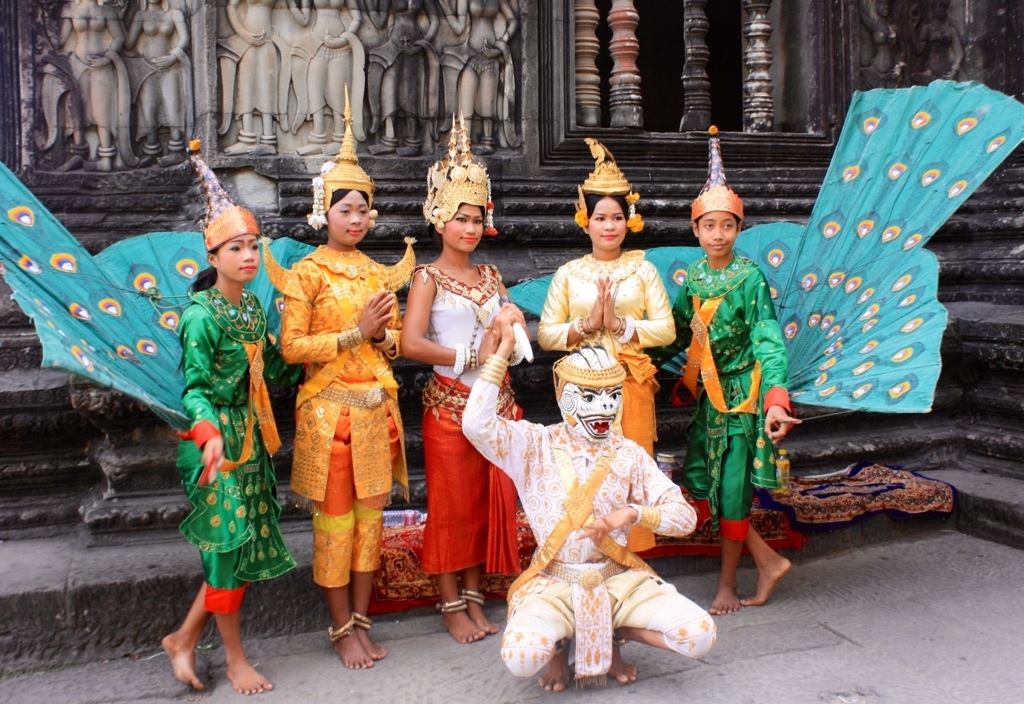 At night, thirteen of us (me and my 4 roommates, the 6 Brazilians who took a liking to us and 2 new friends) crammed into 2 tuk tuks and went to Amazon Angkor to watch a traditional Khmer dance performance accompanied by a delicious all-night buffet. They had an unbelievably bottomless spread of French, Indian, Khmer cuisine. My palate happy to taste bread again. There were five performances throughout the night, each one telling its own story. I learned the origins of the mudras that are so prevalent in Thai and Khmer dance. Each hand gesture represents different parts of the lotus flower. As the dancers create the formations, the lotus unfolds. The dance was slow, calculated, and gravely serious. It seemed like a pre-ritual fit for a beheading. There was something deeply compelling yet unmistakably sad about the performance. It was written in the dancers’ phlegmatic faces. They probably hate their costumes and these stupid tourists (like me) stuffing their faces full of food and this stiff dance they perform monotonously, laboriously, night after night. But they look so beautiful. A beauty that tears me from my chair, draws me straight to the front of the stage to be nearer to it.