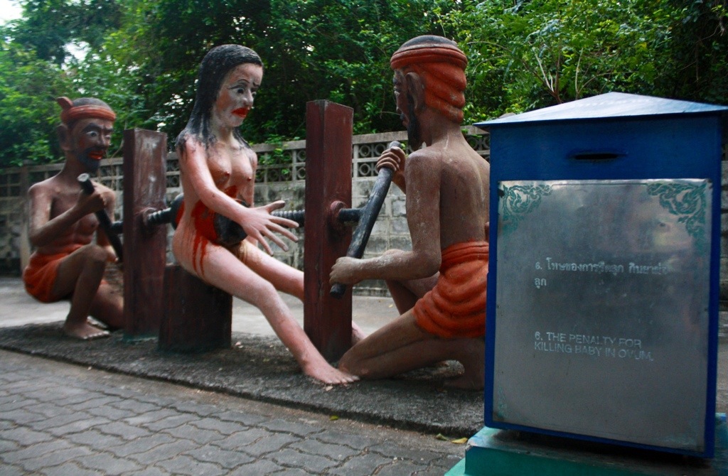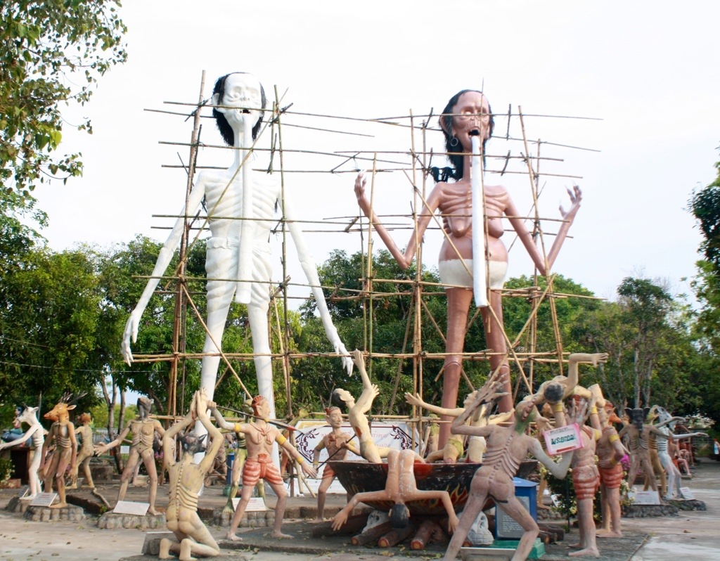 The Thai version of hell, called narok, is different from the Christian Hell in that souls do not go there after they die, they are born there as punishment for sins committed in a former life.