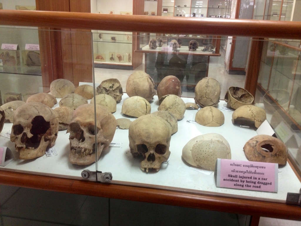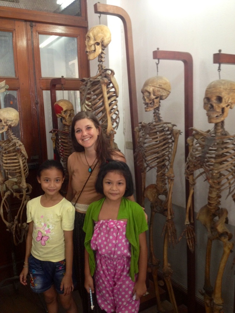 Ryan’s first time in Bangkok. My first time seeing someone familiar in more than six months. So much excitement, so many emotions. We spent the first few days traipsing around the seedier parts of Bangkok to indulge in some much needed celebratory hedonism. And then, a little bit of the usual: fruit markets, temples, tuk tuks, river boat rides, and grasshopper snacks. And a little bit of the unusual: Bangkok’s Forensic Museum, which displayed anatomical oddities, bone deformities, and babies with genetic disorders preserved in glass pools of formaldehyde. We loved it, we’re led around the museum by a pair of eager tour guides–two eight-year-old girls who took a liking to me the moment I revealed my knowledge of basic Thai. Oddly, they seemed just as thrilled about these misshapen cadavers as we were. We conversed in Thainglish and they held my hand as we raced around from corpse to skeleton.