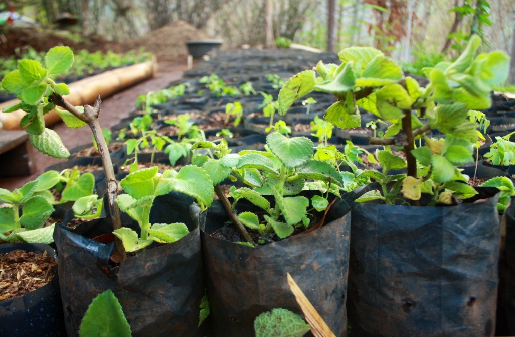 Thai mint and papaya in the nursery.