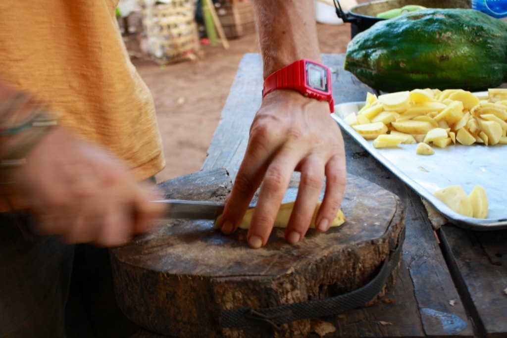 Teacher Boy cutting some potatoes.