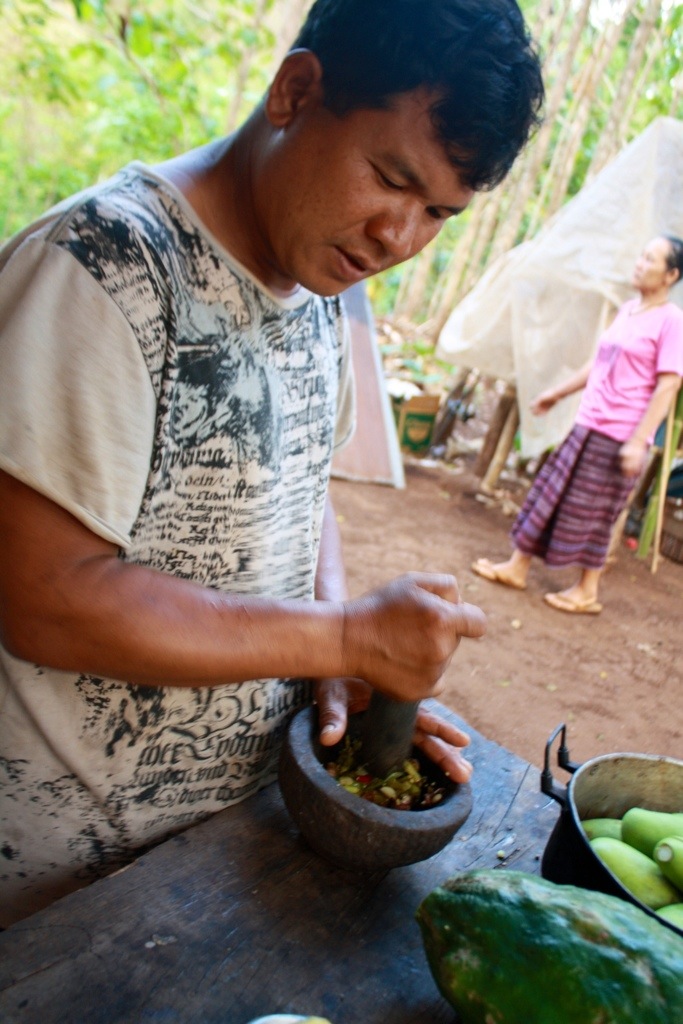 Sao making “nam prik,” or chili paste, for dinner.