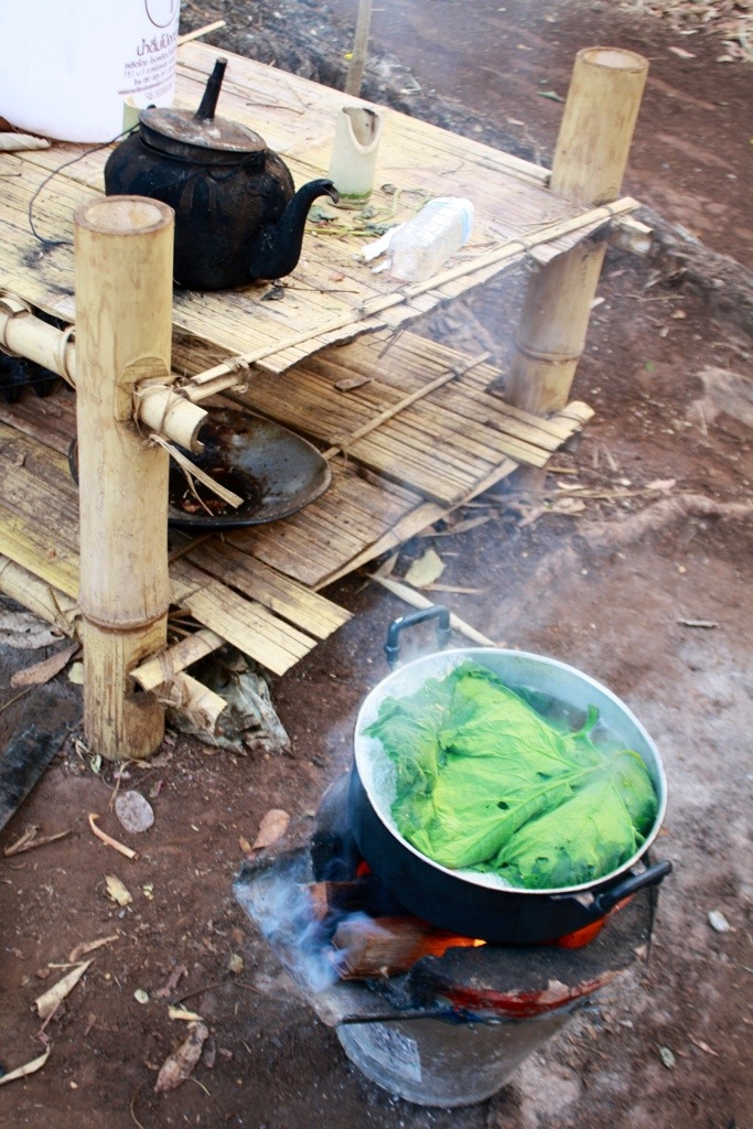 Our days began at 7:30am: We roused and headed to the hill for breakfast that was hot and ready for us by 8am. Breakfast was always made from fruits, veggies, plants, and herbs from Sao’s farm and served with rice and coffee. After breakfast, we usually worked in the newly-built papaya nursery. We unearthed papaya seedlings that had sprouted haphazardly from papaya trees near Sao’s home and replanted them in compost (pig manure, rice chaff, and dirt) pots and aligned them in the nursery. After some watering and tending, Sao will relocate them to a bigger area of land nearby to create a papaya forest. We planted approximately one thousand papaya trees, and they begin bearing fruit in about 3 or 4 years, so Sao and his family should have a plentiful supply of papaya well into the future!