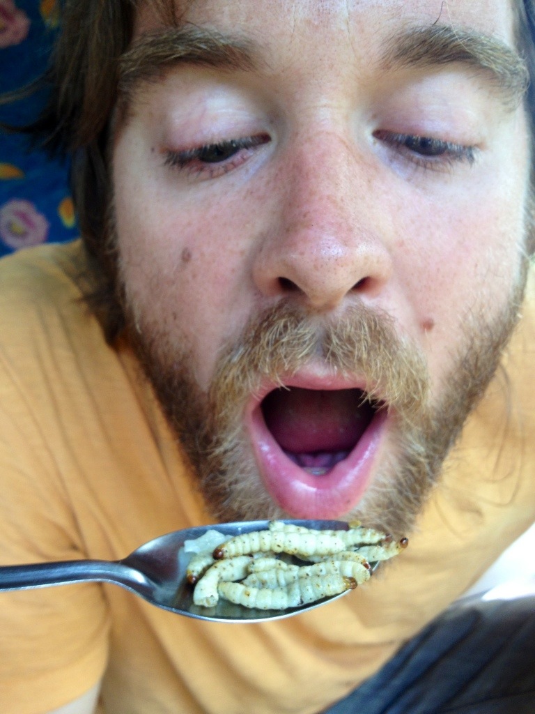 Ryan eating caterpillars.