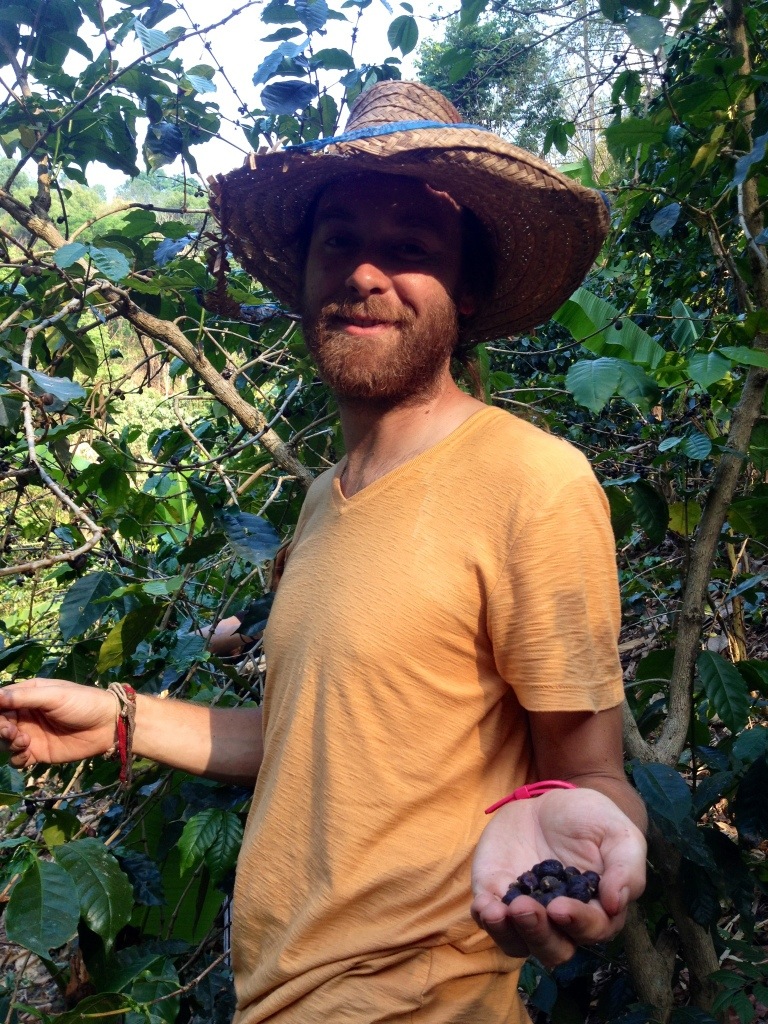 Ryan picking coffee beans.