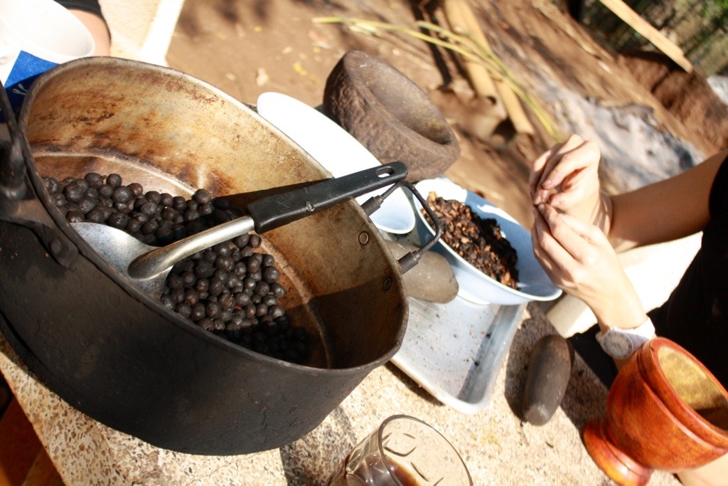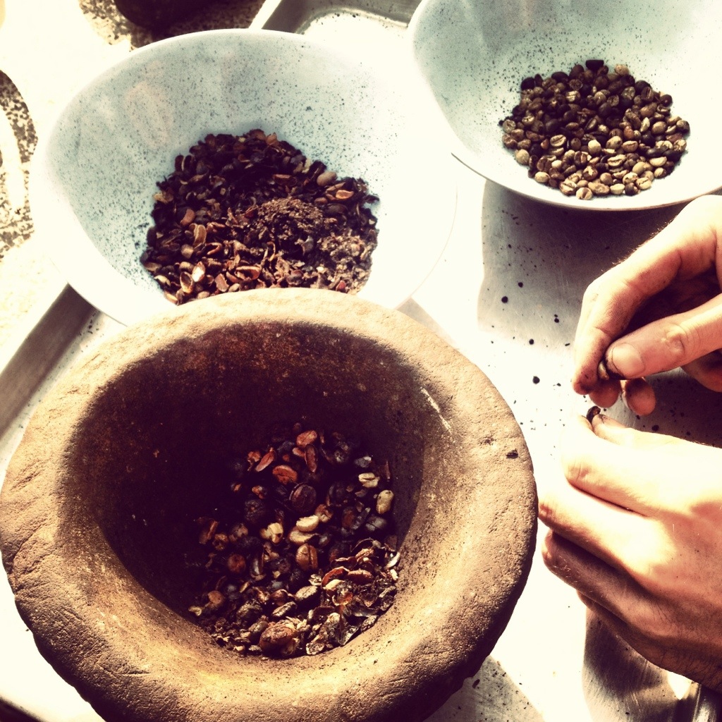 Shelling coffee beans is hard work!