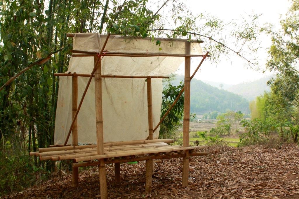 At Sao’s organic farm, in a village called Khun Sap, there is an outdoor kitchen, a community space centered around a campfire, acres and acres of bamboo forests, and many homemade bamboo bungalows perched high on a hill overlooking the surrounding mountains and rice paddies. When we arrived, many volunteers were occupying the bungalows so we stayed a little farther down the hill in an old rotary club building that we called “the scout house.” The accommodations were simple; we slept on the floor with a few blankets and had a squat toilet and a bamboo shower.