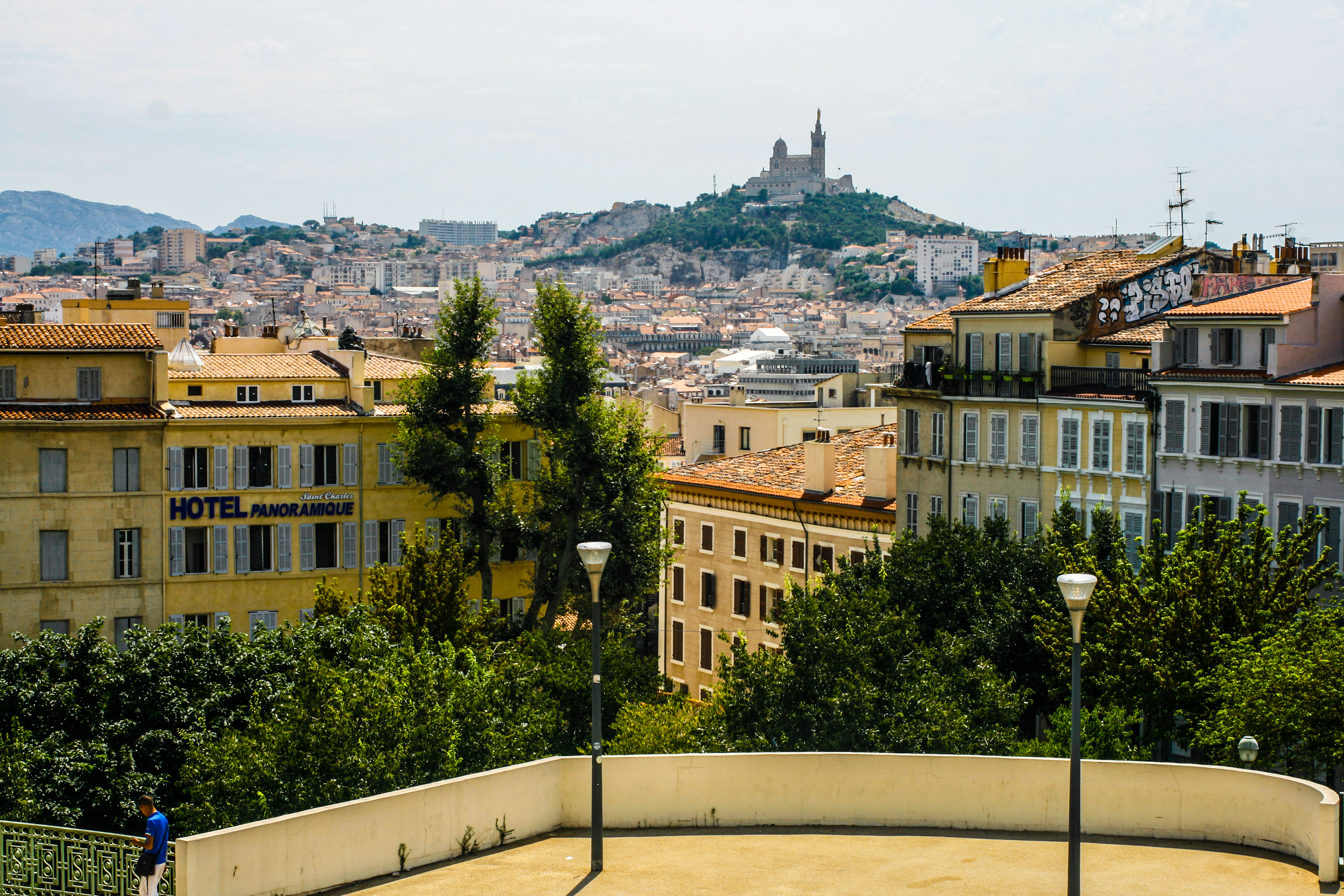 La Bonne Mère is on a hill to the right and can always be seen from anywhere in the city.