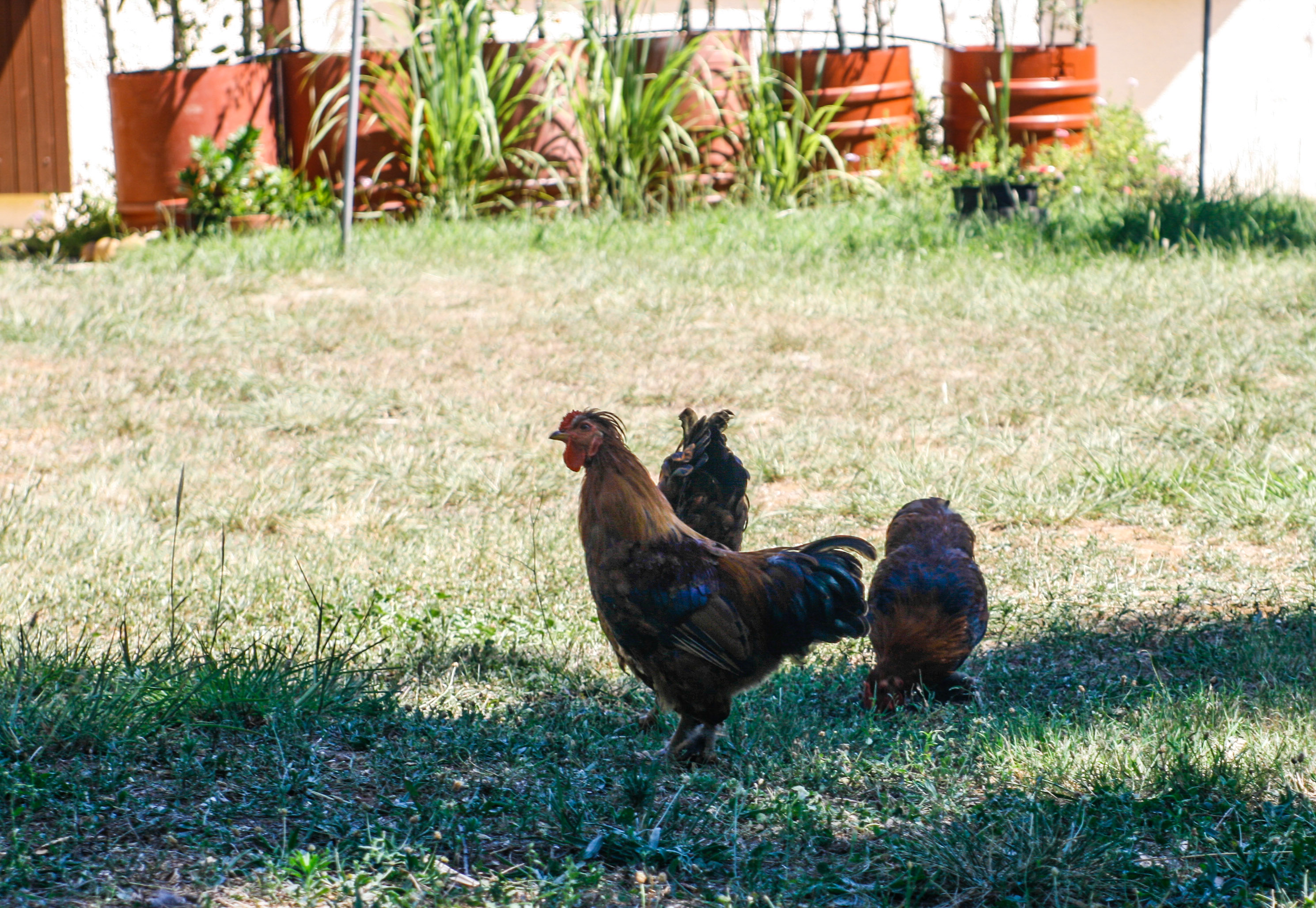 Some of the 10 chickens at Chez Les Ebels. There were 5 hens and 5 roosters.
