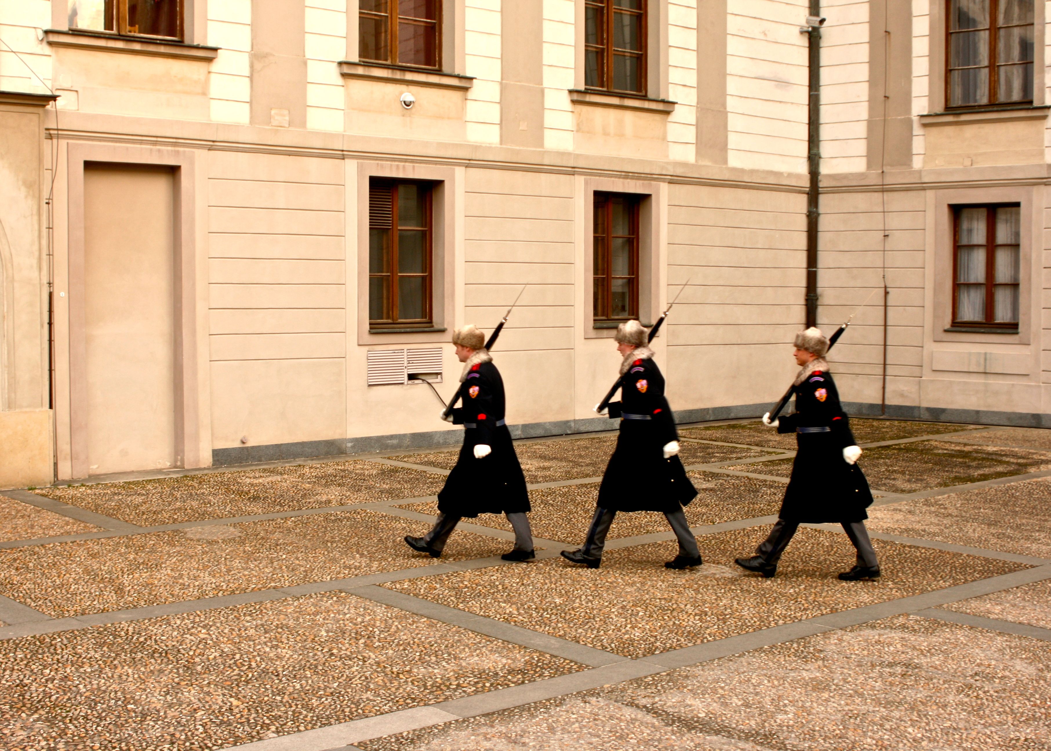 Prague Castle guards changing shifts.