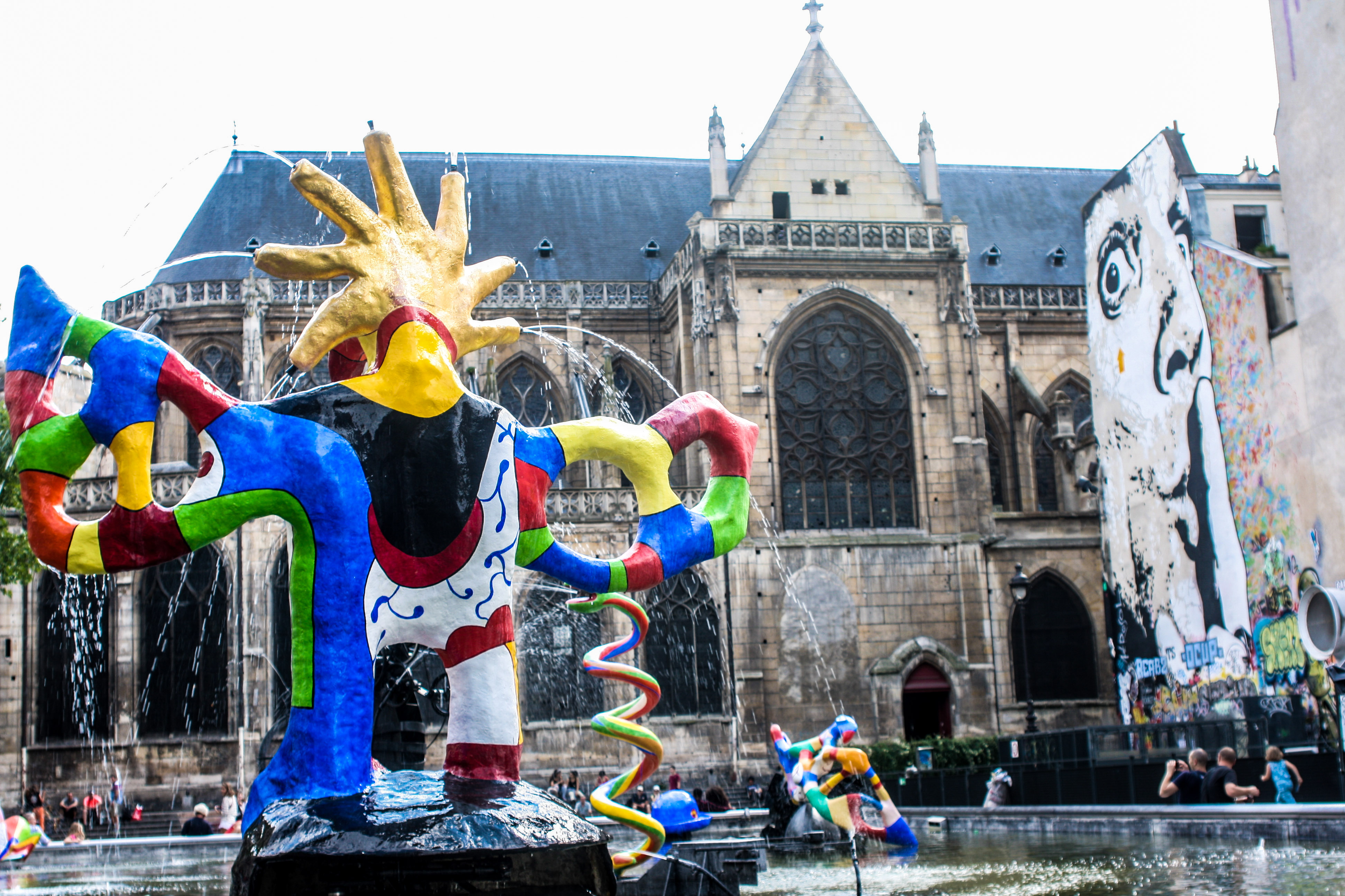 La Fontaine Stravinsky with Dali in the background. Outside the Centre Pompidou.