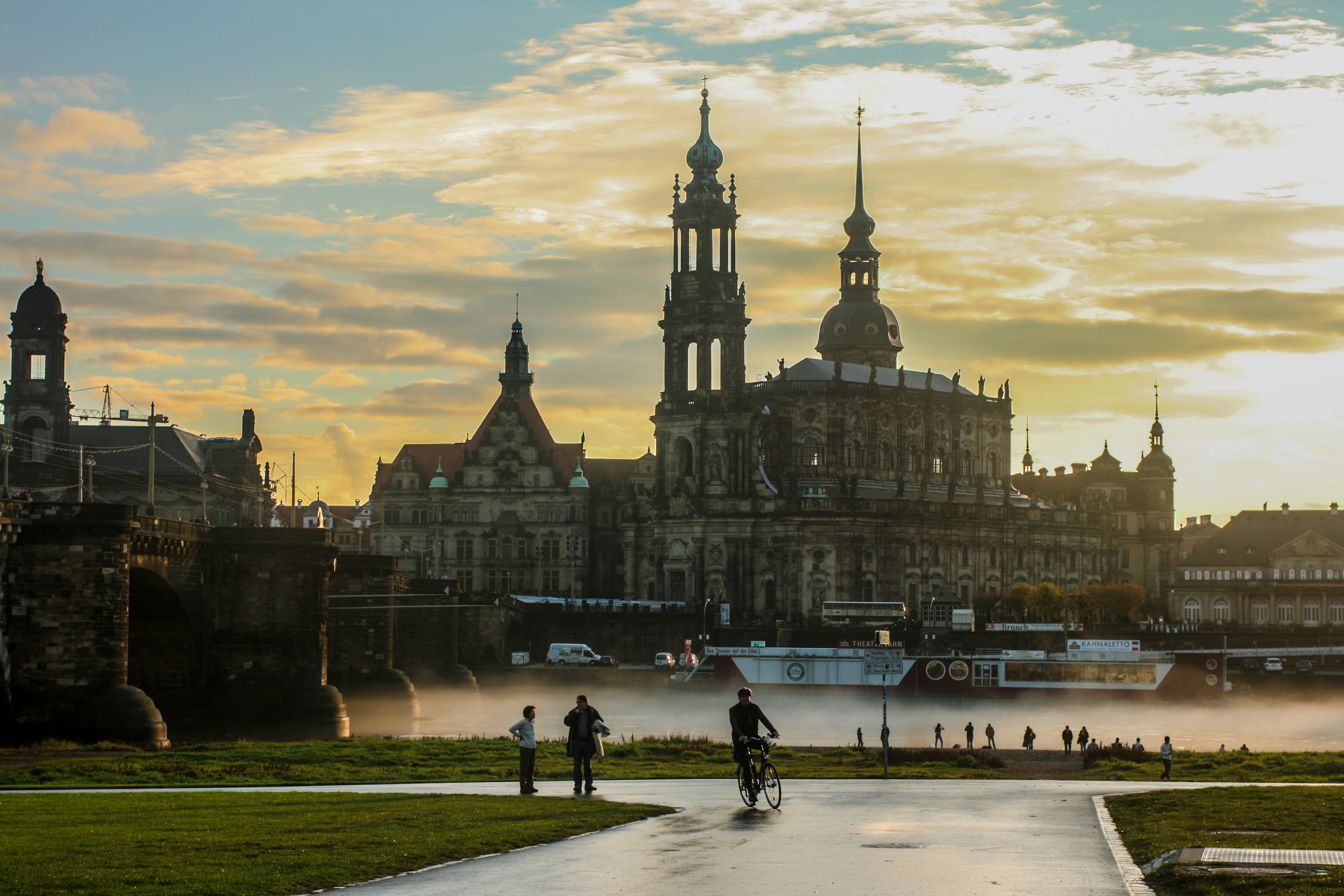 There was only problem–the camera. It’s a little difficult to run with a DSLR, so we opted to walk the route instead. It was a tough decision (and one I’m faced with more often than not): to be active in a new place or to be passive, observing, and taking pictures. But, after seeing the architecture, restored to its original pristine quality after almost 90% of the city was demolished in the bombing, and marveling at the sunset which cast a dreamlike glow over the Elbe River, I think I made the right decision.