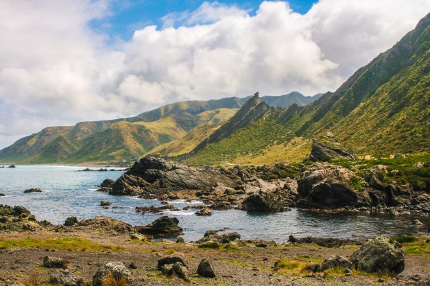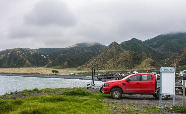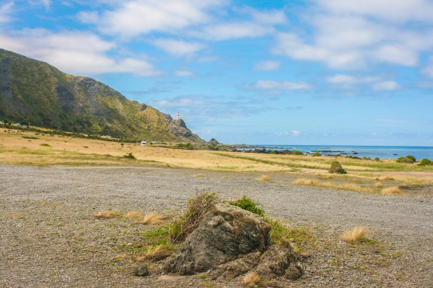 In Māori mythology the North Island of New Zealand is the ika (fish) that Maui, a mischievous demi-god, fished up from the Pacific Ocean. The South Island is his waka (canoe). This symbolism presupposes the early Māori’s ability and ingenuity to think of Aotearoa (New Zealand) from the vantage point of the heavens. With this picture of the North Island as a fish in mind, look at a map of New Zealand and tilt your head to the left. The Wellington Harbour and Lake Wairarapa are the fish’s eyes and Palliser Bay is the fish’s mouth. Our destination was Cape Palliser, just beyond these facial features, at a point somewhere on the fish’s gaping bottom lip.