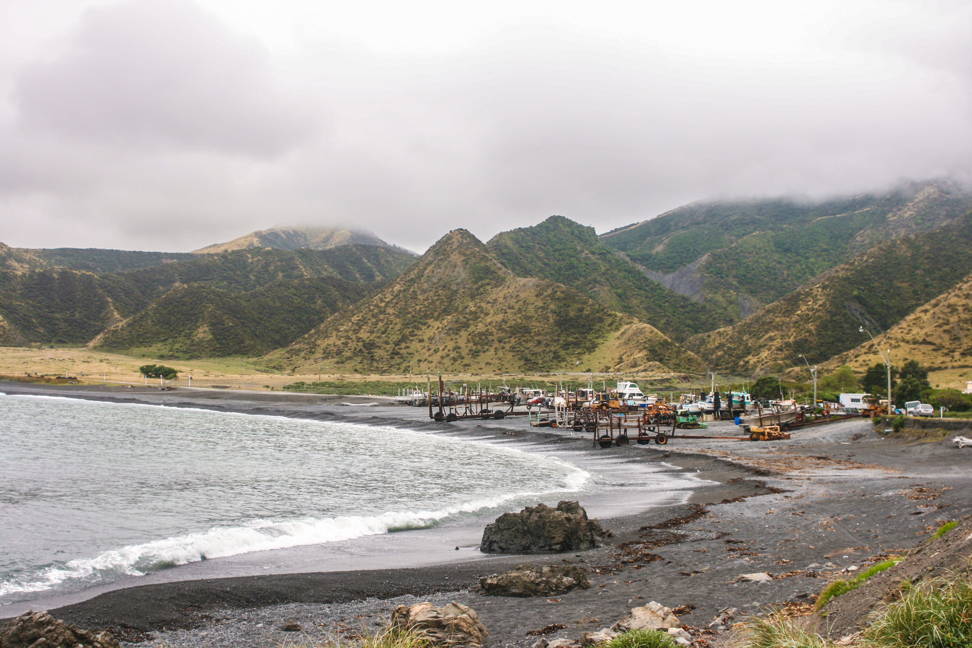Later, we went for a slow drive on a gravelly road and stopped to take pictures of oddly placed objects and weatherworn baches with unmistakable facial expressions. We passed no one on the road. There was an eerie silence about this place, but despite the isolated feeling of the landscape, people did live here. Nearby was a small settlement called Ngāwī, whose main source of income is crayfish, but I had the sense that these were private, hermetic people. People who went fishing in the early morning and sat indoors by the window drinking tea and reading the newspaper, who remained unconcerned with the handful of tourists that showed up every now and then, or the rapid changes of the erratic weather outside, or the slow passing of time, while waves crashed rhythmically at their doorstep.