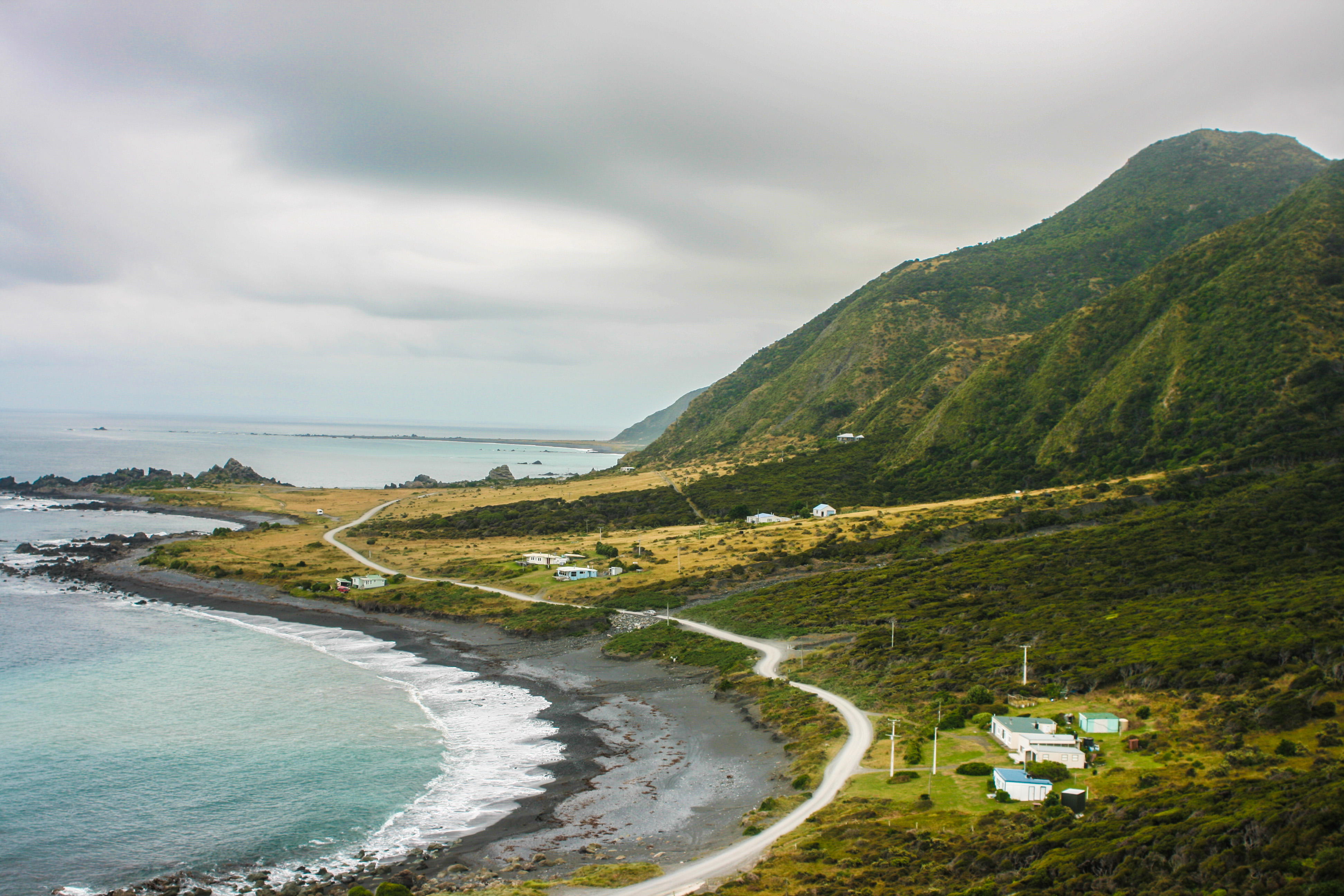 In our little Mazda, we drove down narrow roads that cut and curved through the Rimutaka Ranges. The air grew cooler and the sun began to set, leaving a golden nebulous behind the mountains which stretched across the horizon. The more winding and isolated the roads became, the more spectacular the scene, and the more nauseated I began to feel. Motion sickness is always a palpable, albeit uncomfortable, reminder that I’m somewhere far-flung and beautiful.