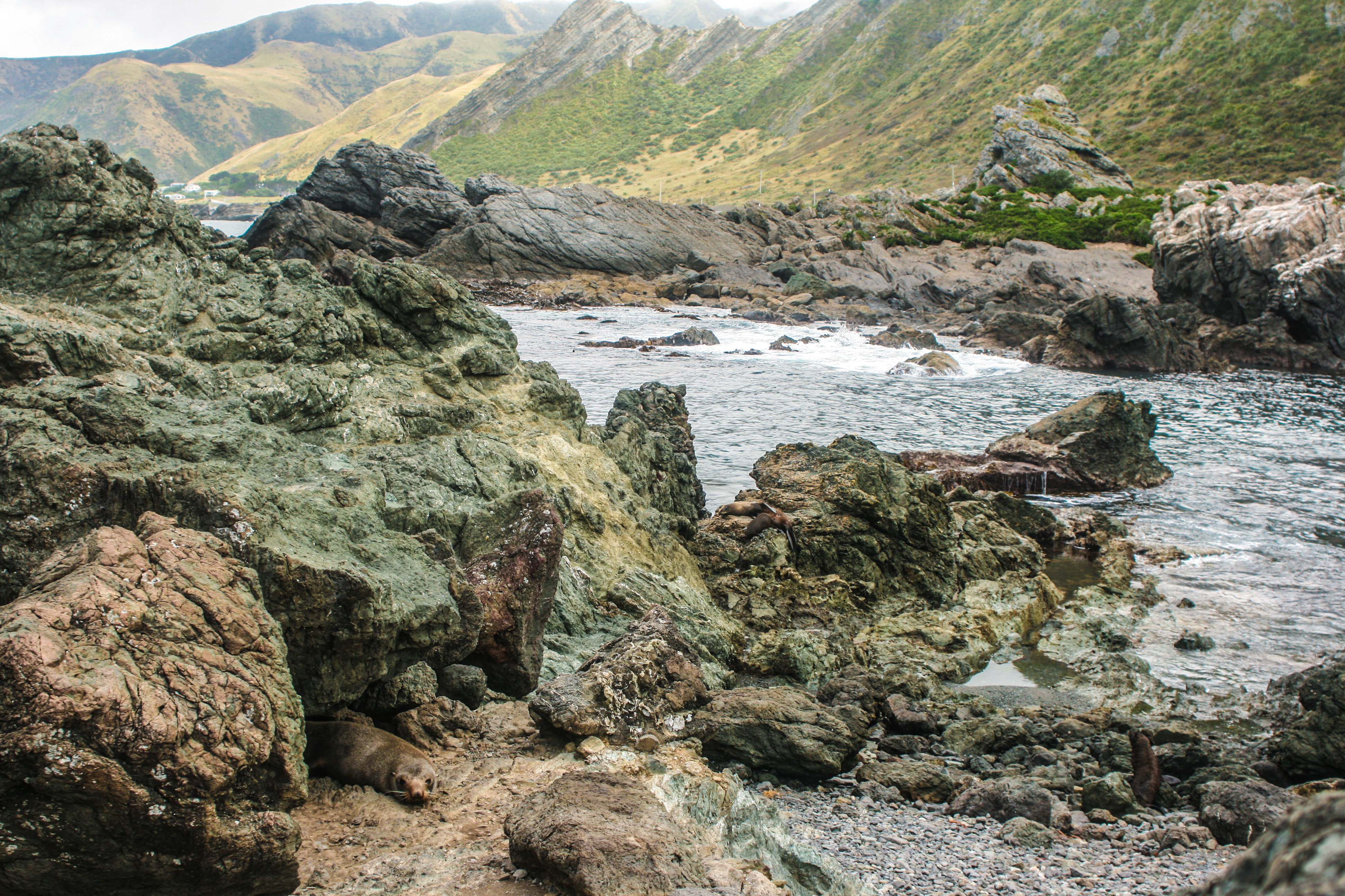 We arrived to Cape Palliser by nightfall and set up our tents by the light of our iPhones, fumbling through a pitch-black darkness which we forget exists in cities. We went to sleep to the sound of waves lapping and breaking on rocks, wondering what scenes awaited us in the morning.